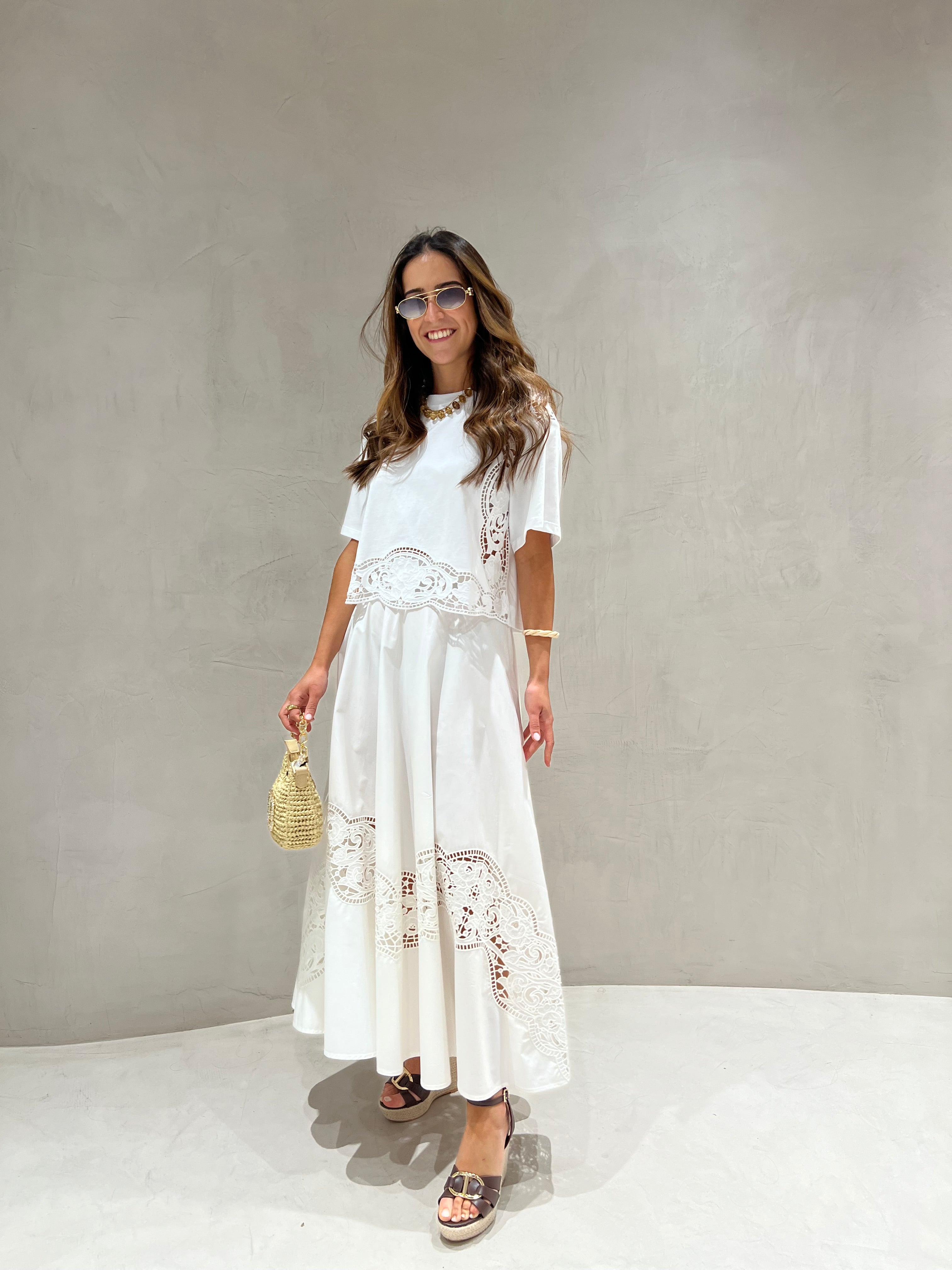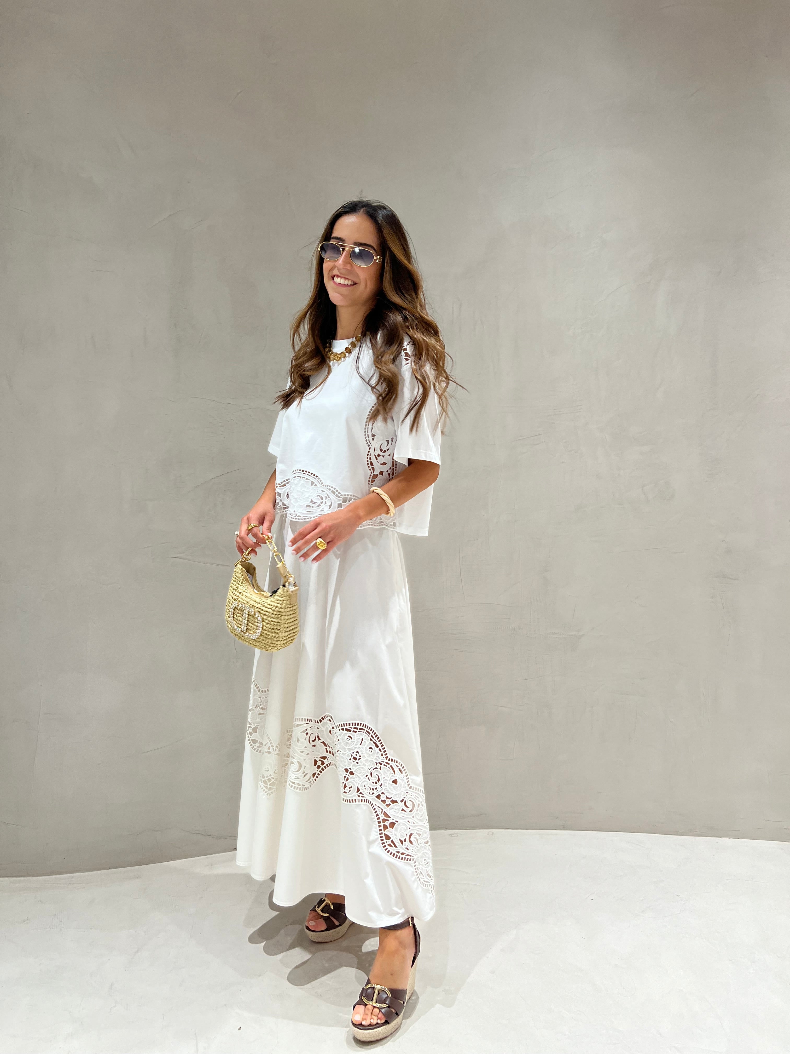 Saia branca TWINSET com bordado inglês