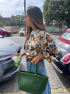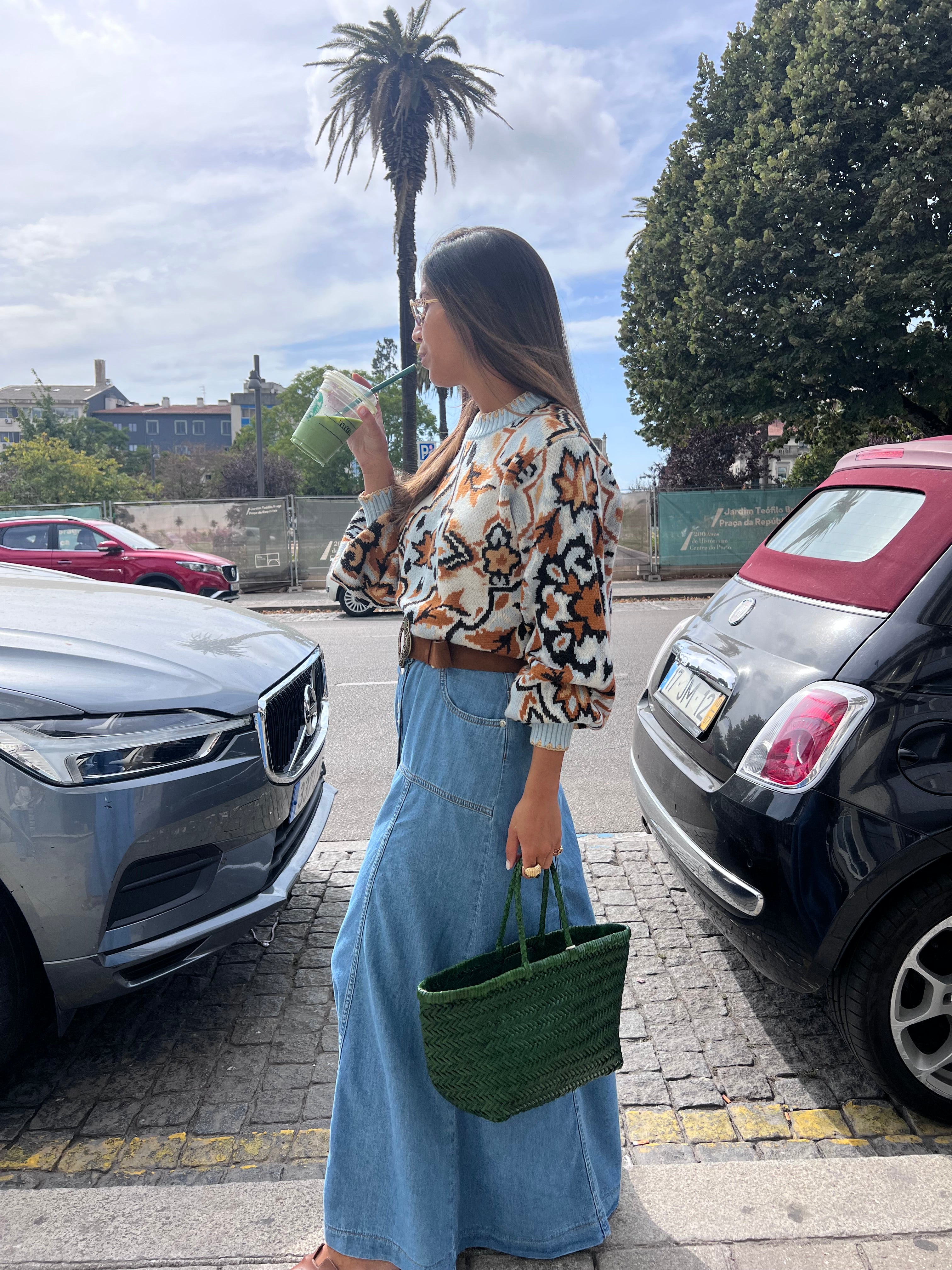 A modelo mede 1,63m e está a vestir o tamanho 36 (S).