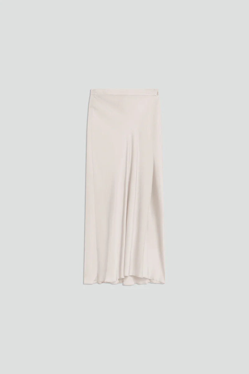 Saia midi acetinada Semicouture ecru de trespasse com mola invisível na lateral.
