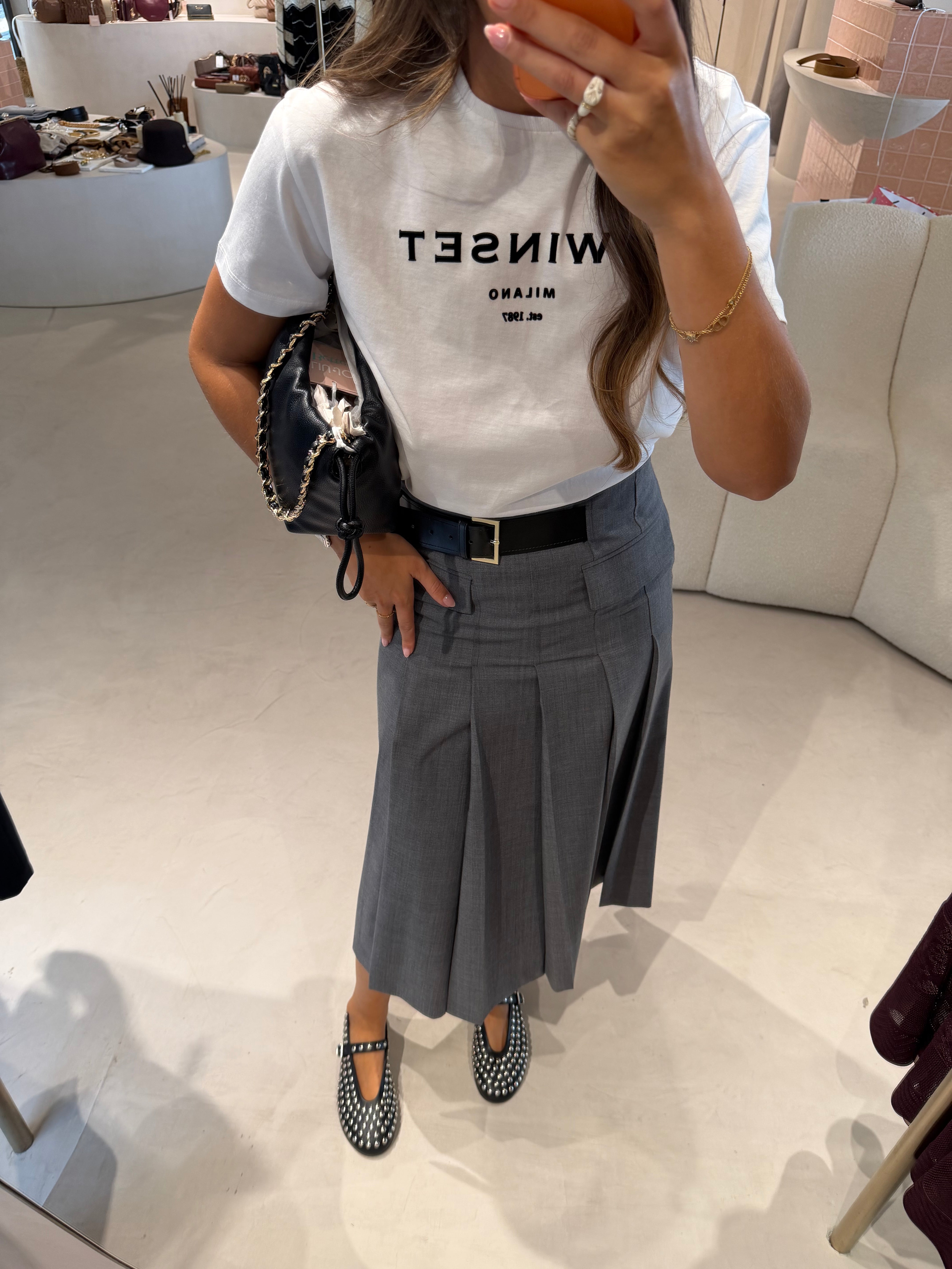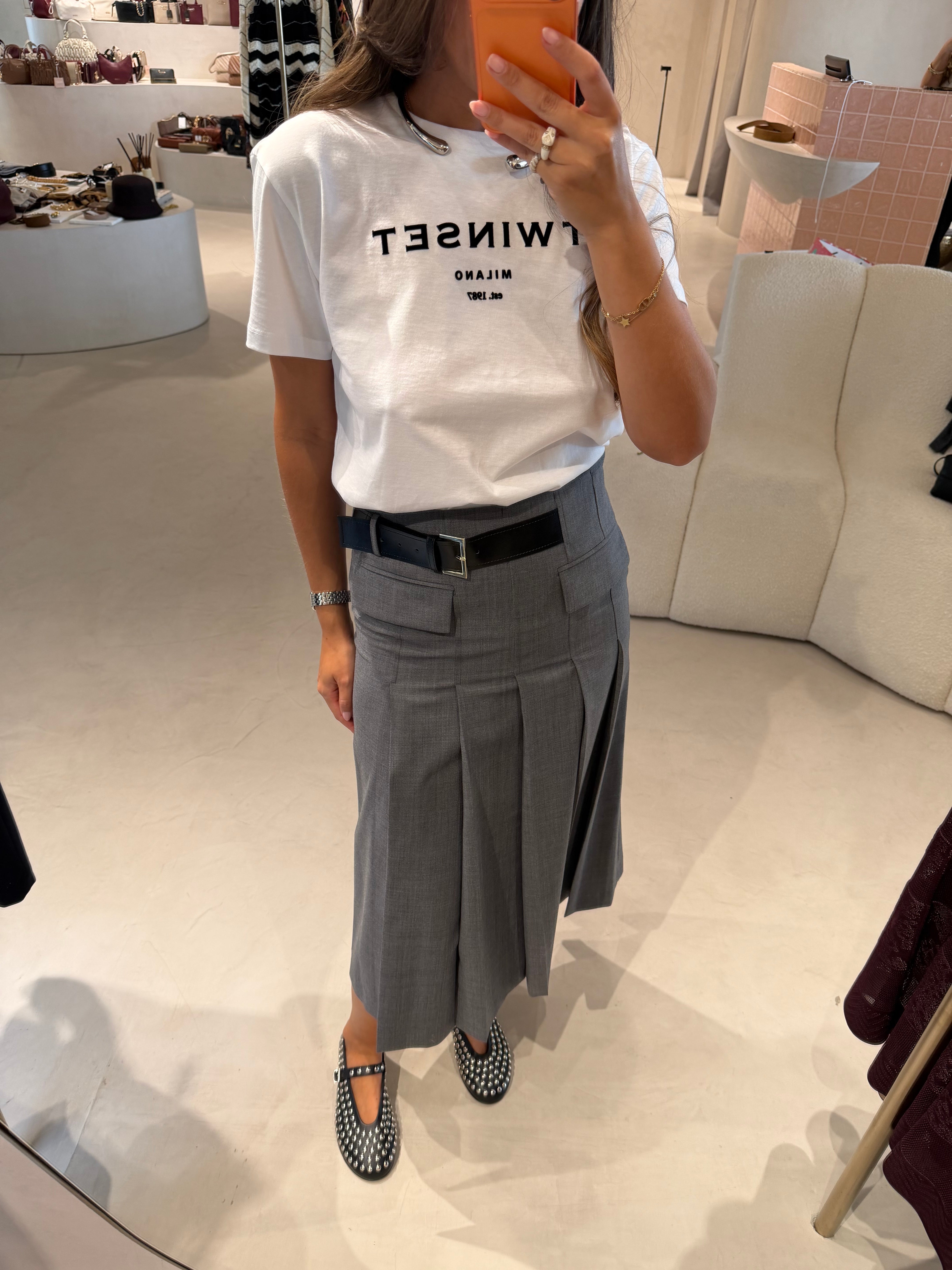 Envolve-te na elegância atemporal da Saia Tracy. Confeccionada em fresco de lã, esta saia apresenta um padrão de pregas frontais que conferem movimento e fluidez. Um cinto lateral discreto realça a cintura com sofisticação, enquanto o corte regular e o comprimento até ao tornozelo criam uma silhueta equilibrada e elegante .