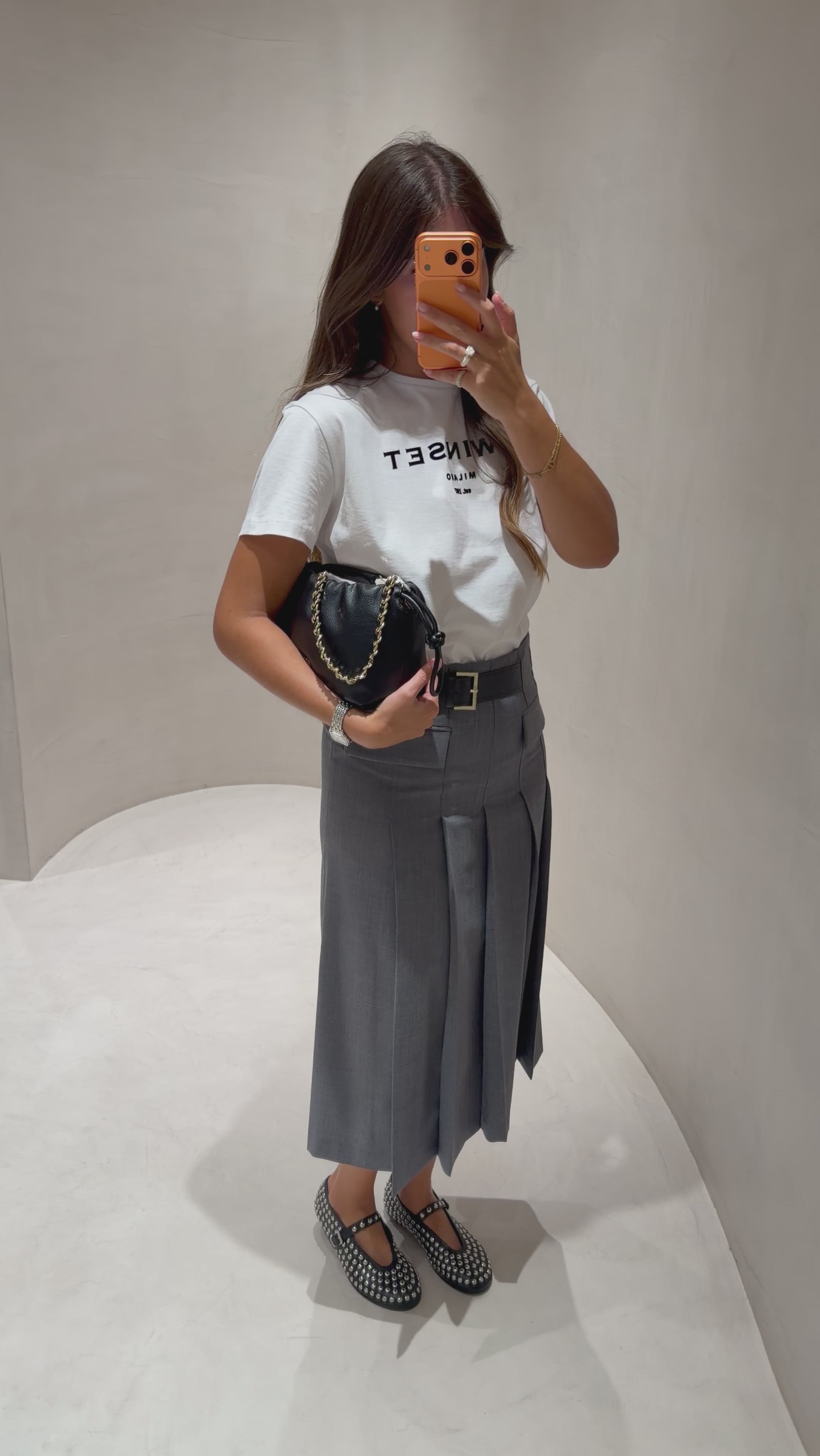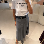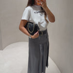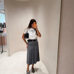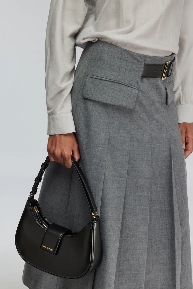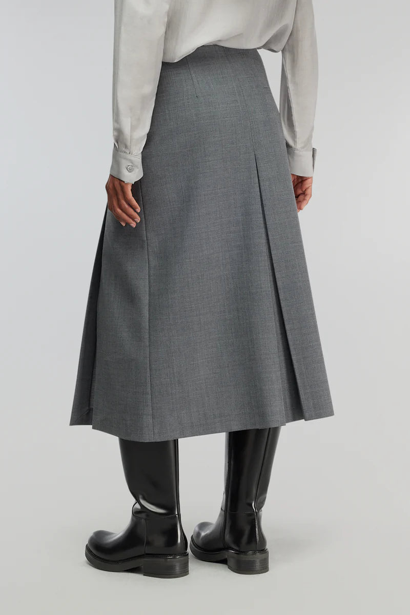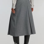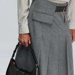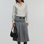 Saia Midi em Lã Cinza com Cinto Tracy | SEMICOUTURE