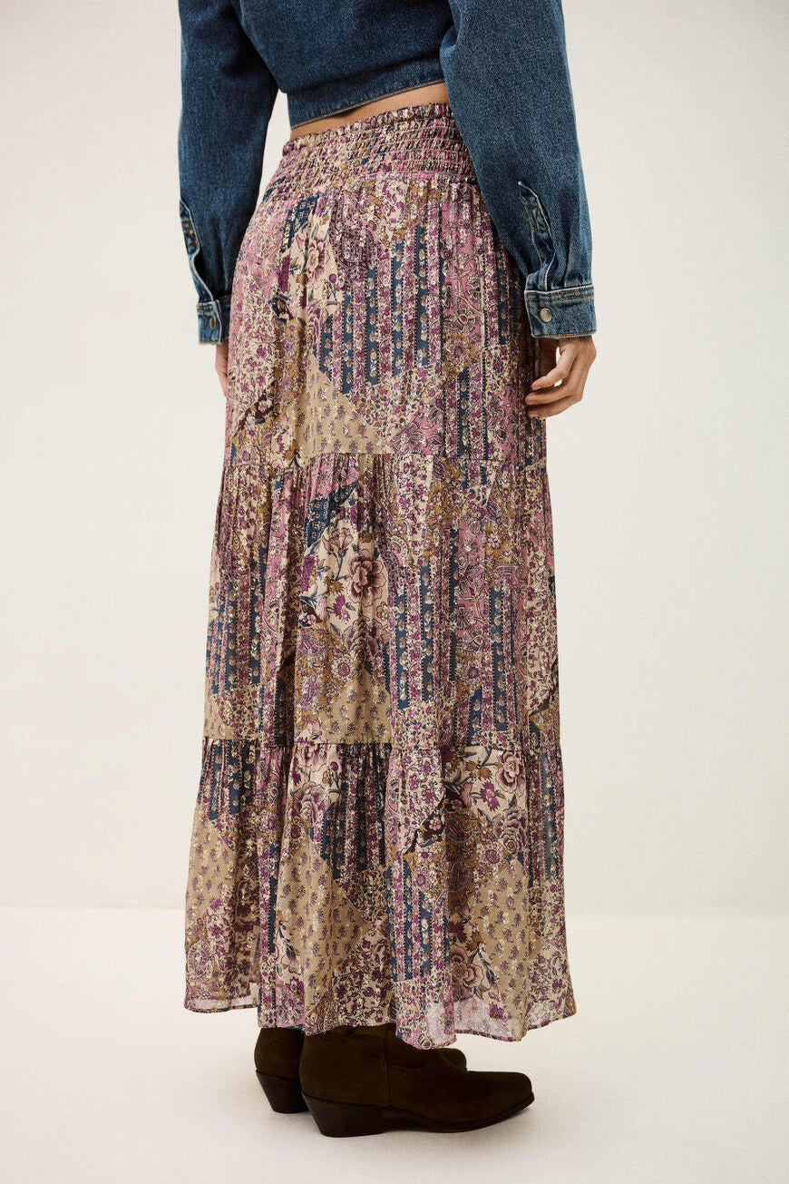 A Saia Pitsy Rose é uma peça elegante e feminina da coleção ba&sh, perfeita para quem busca um visual delicado com movimento e personalidade. Com um corte maxi fluido em camadas, esta saia cria uma silhueta leve e sofisticada, ideal para composições diurnas ou noturnas com um toque de glamour casual.