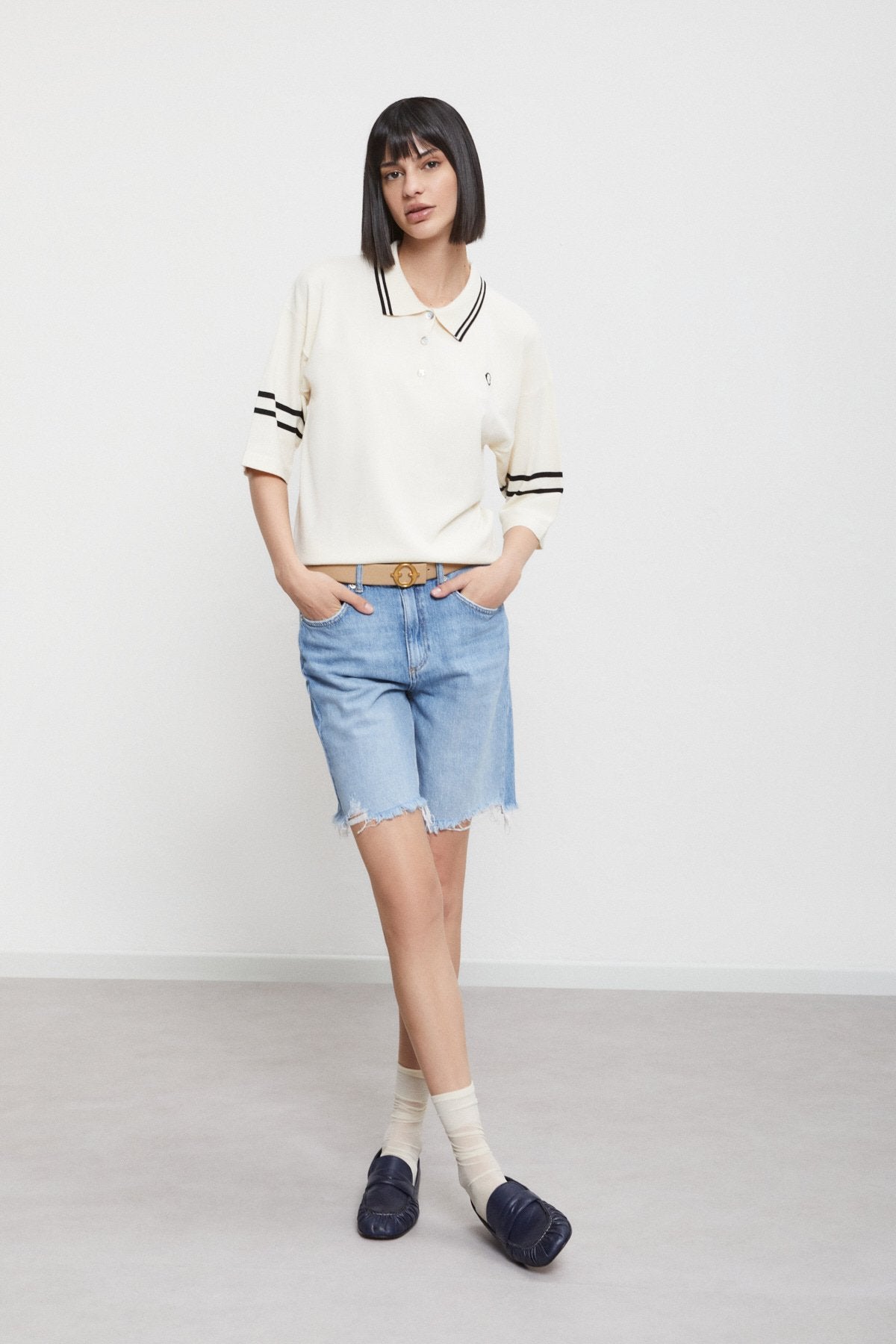 Polo Ottod'ame em malha branca com riscas