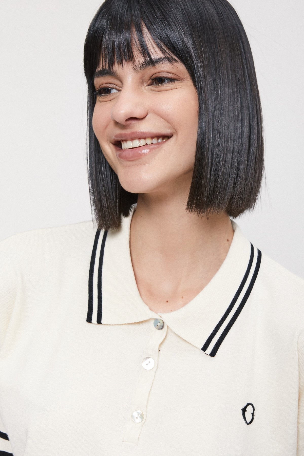 Polo em malha Ottod'ame com gola clássica, botões à frente e riscas nas mangas e gola, logo bordado no peito.