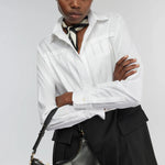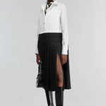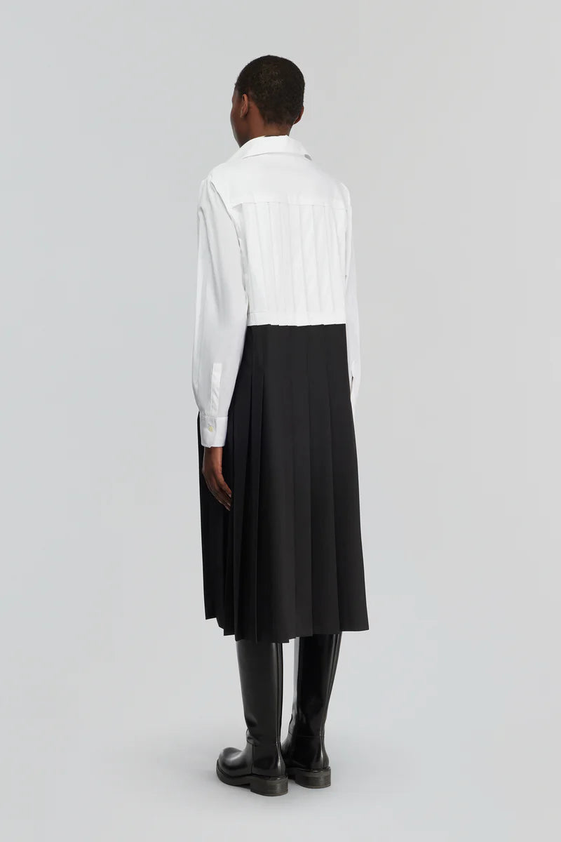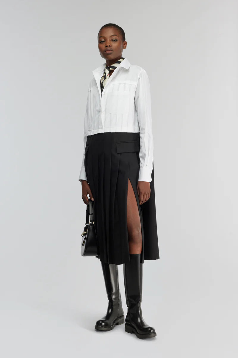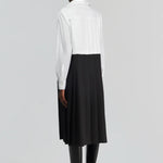 Vestido Midi em Popelina Preto e Branco com Pregas Salome | SEMICOUTURE
