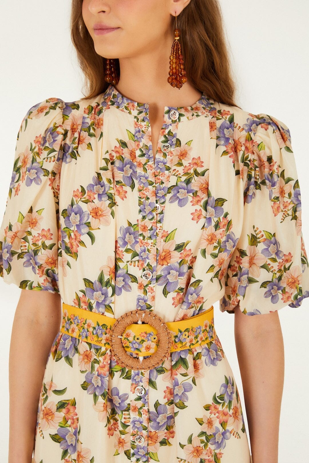 O vestido mini estampado da FARM Rio é a escolha perfeita para a mulher com personalidade marcante. Com estampa botânica vibrante, mangas volumosas e cintura marcada, valoriza a silhueta enquanto transmite leveza e confiança.