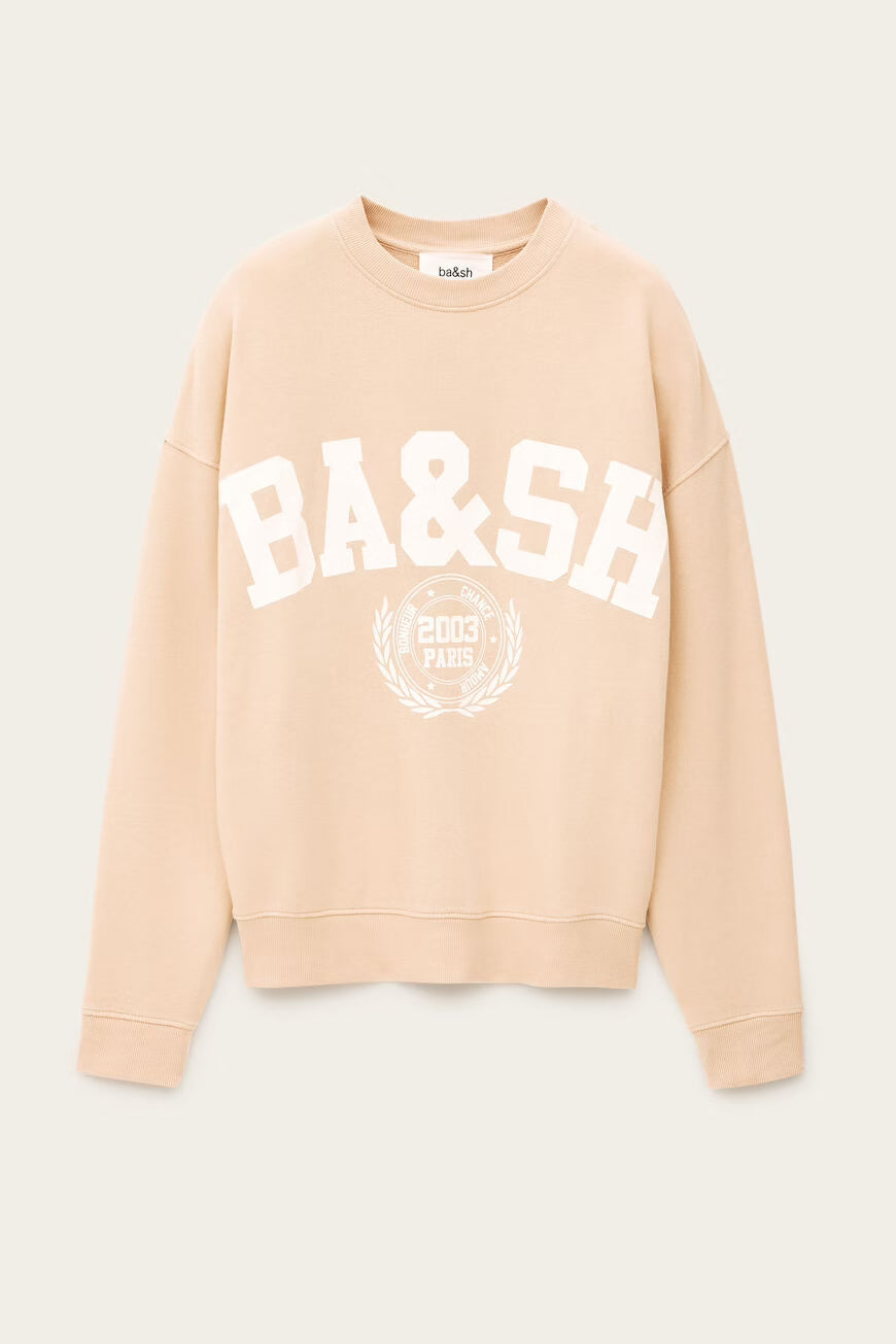 A ba&sh Benjamin Sweatshirt Poudre é uma sweatshirt em algodão orgânico com toque suave e caimento descontraído, perfeita para looks urbanos confortáveis com um toque contemporâneo.