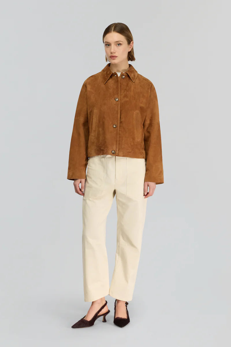 Blusão em Camurça Camel com Manga Kimono Violetta | SEMICOUTURE