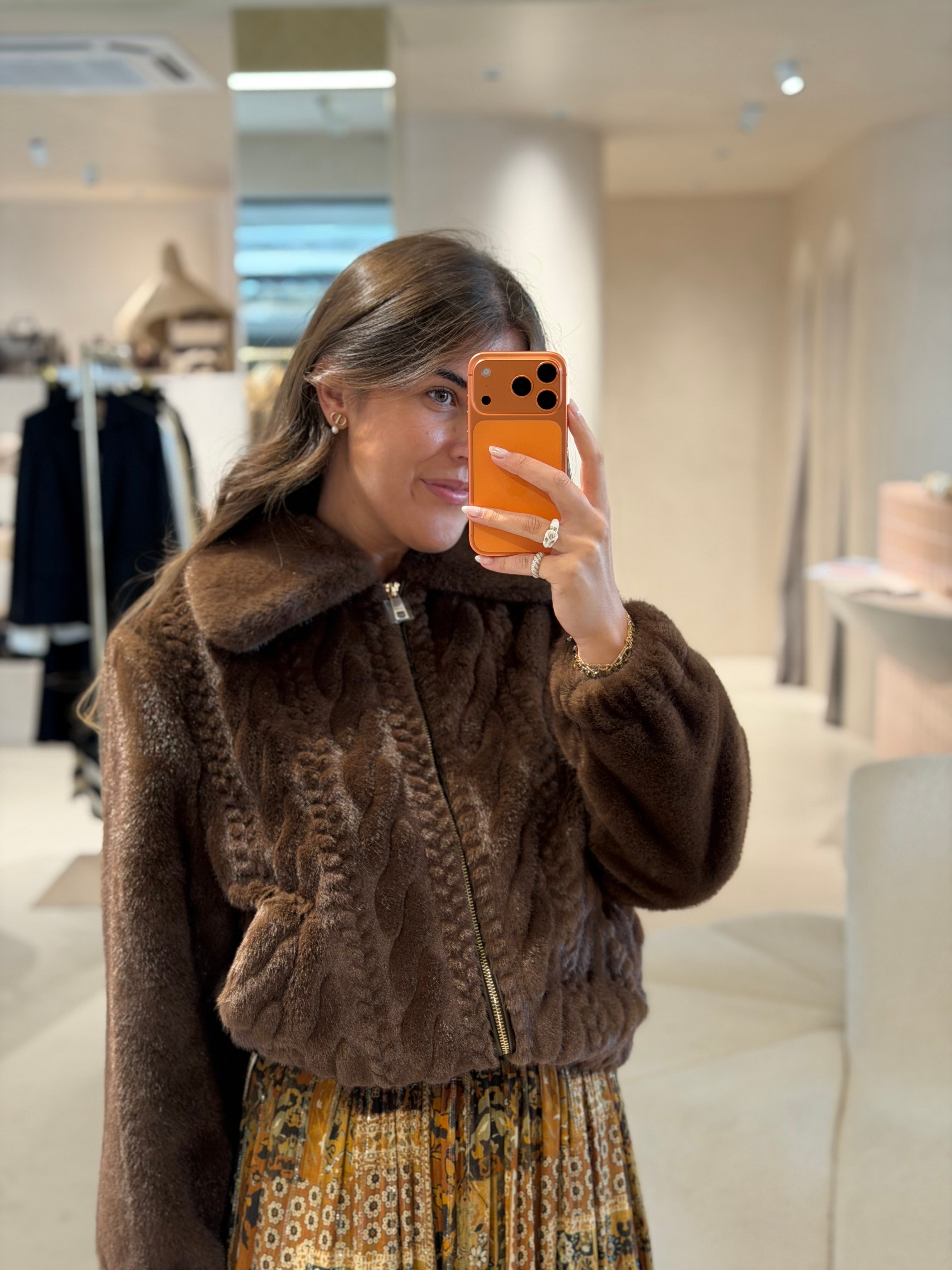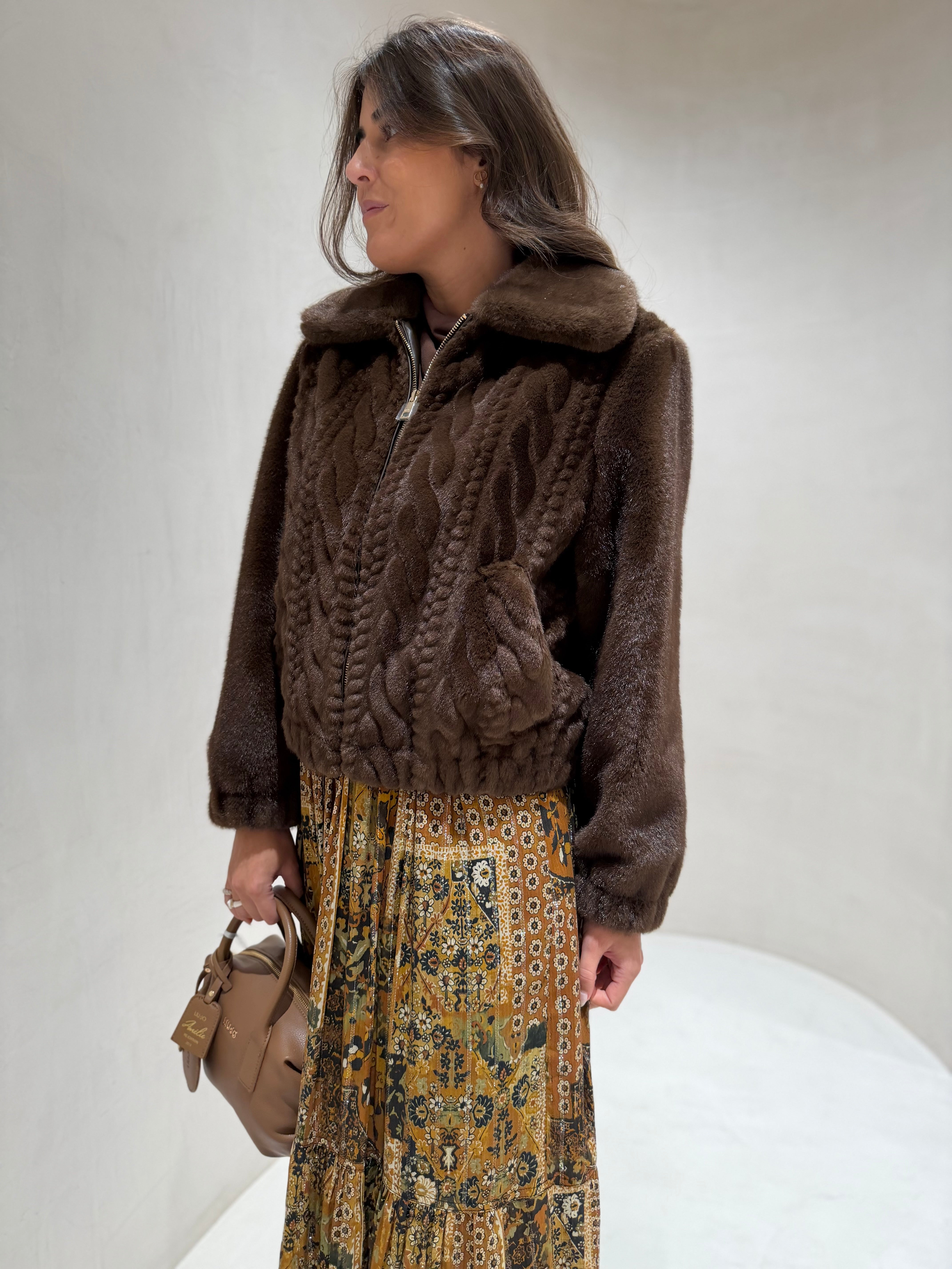 Bomber Castanho em Pêlo Sintético Tricotado | Liu Jo