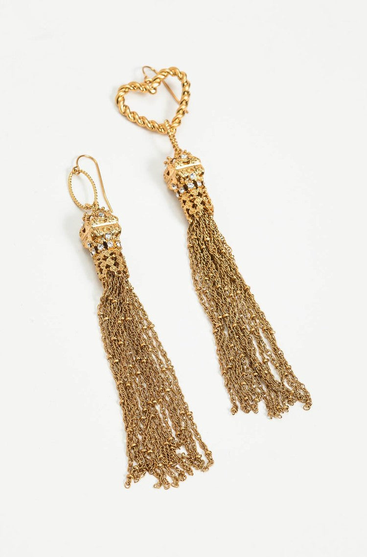 Realce o visual com estes brincos Twinset com tassel metálico e detalhe “Oval T” com strass, em acabamento dourado que capta a luz com elegância. O estilo pendente e os fios finos criam um balanço delicado, ideal para complementar looks de festa ou acrescentar brilho a composições minimalistas. Fecho de tarracha garante segurança e conforto para uso prolongado.