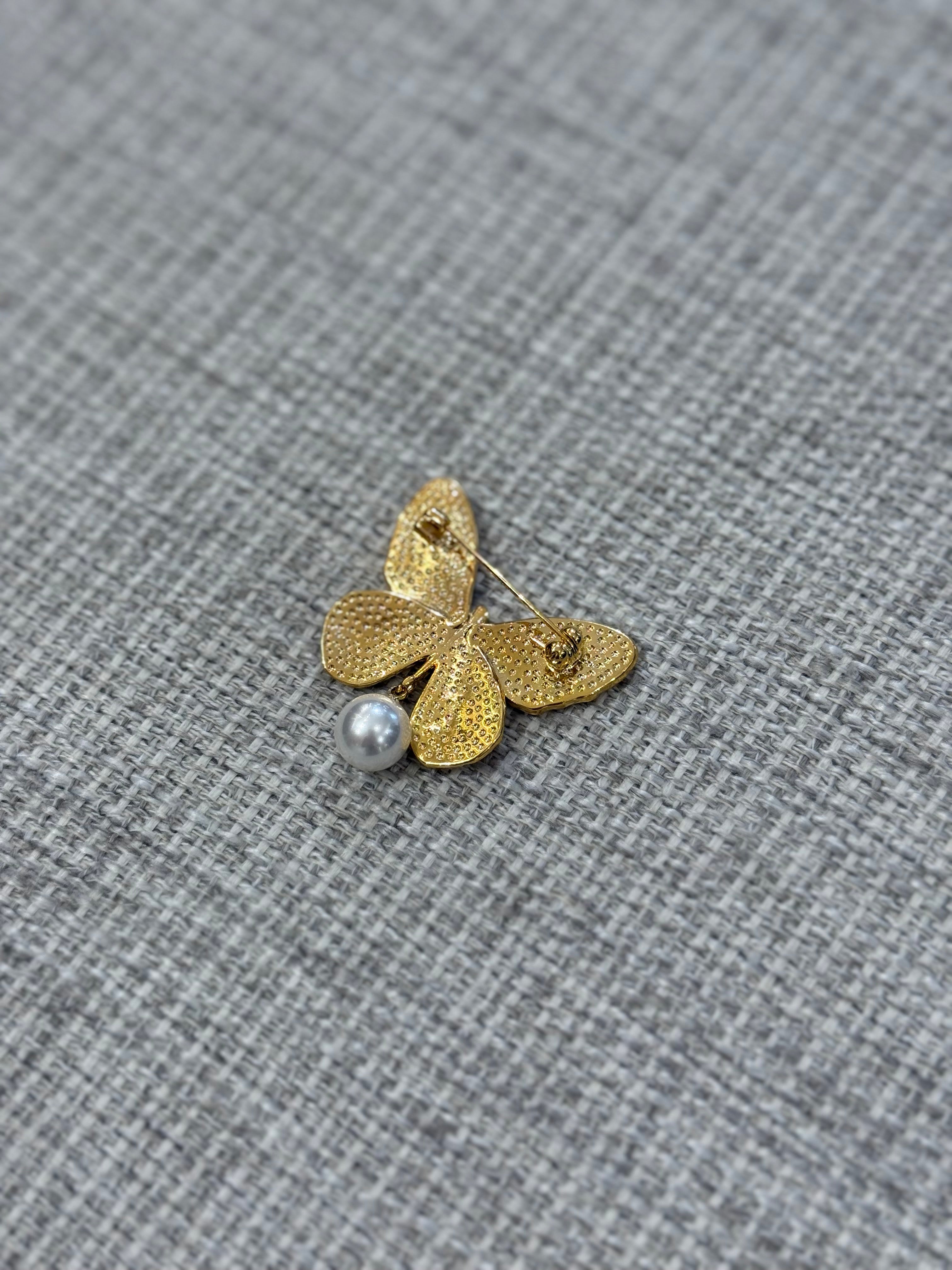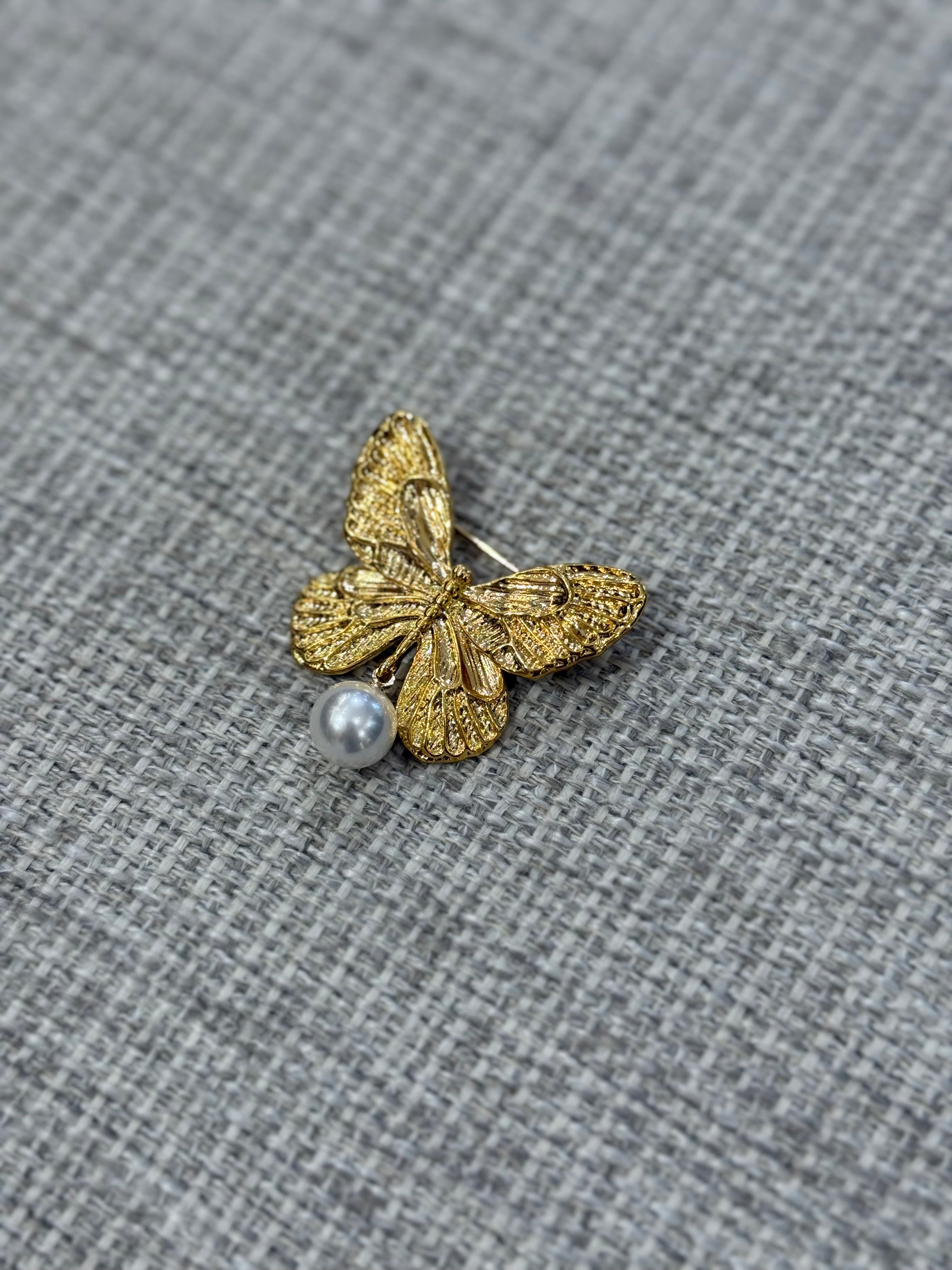 Broche Borboleta Dourada com Pérola de Água
