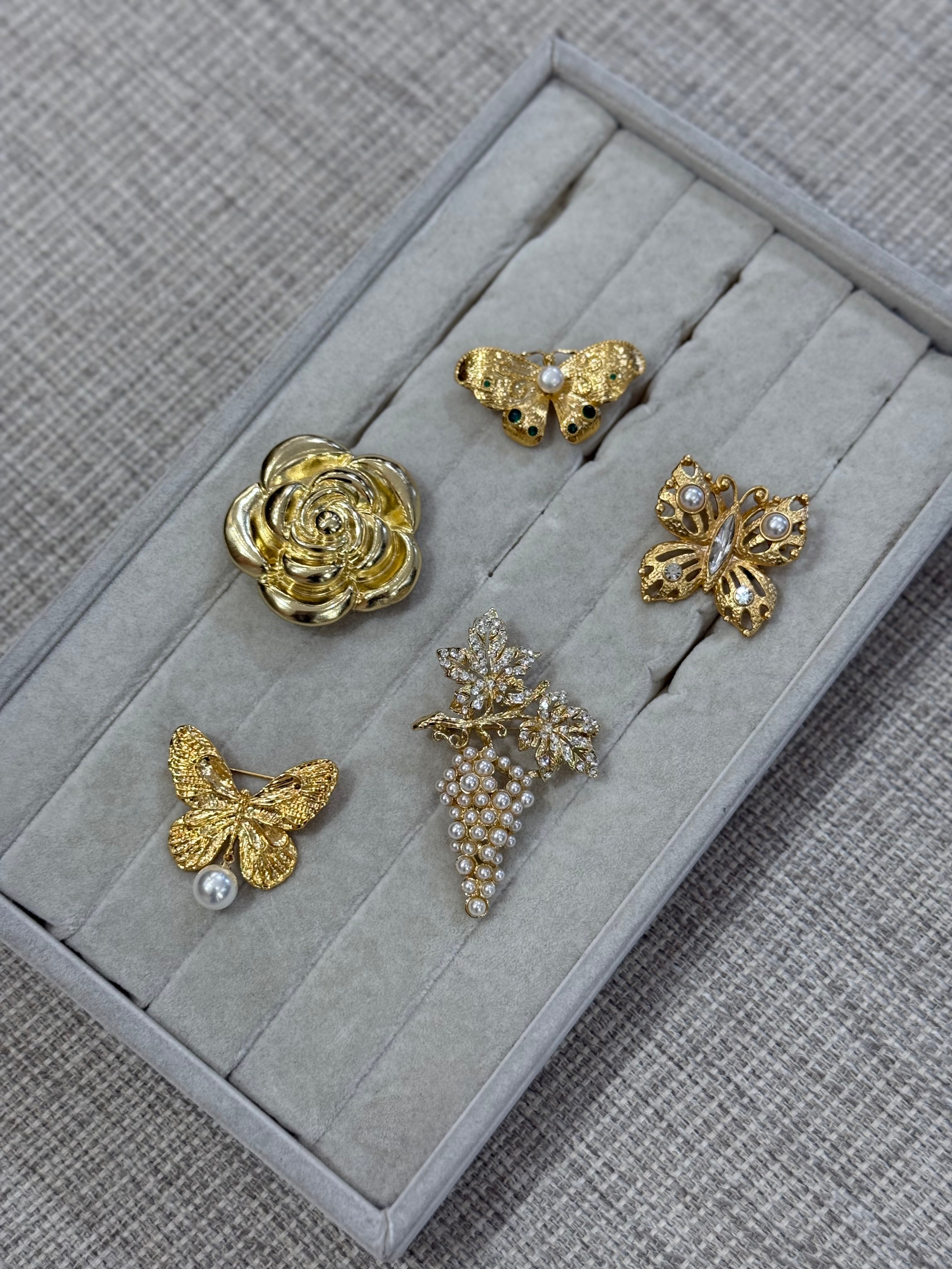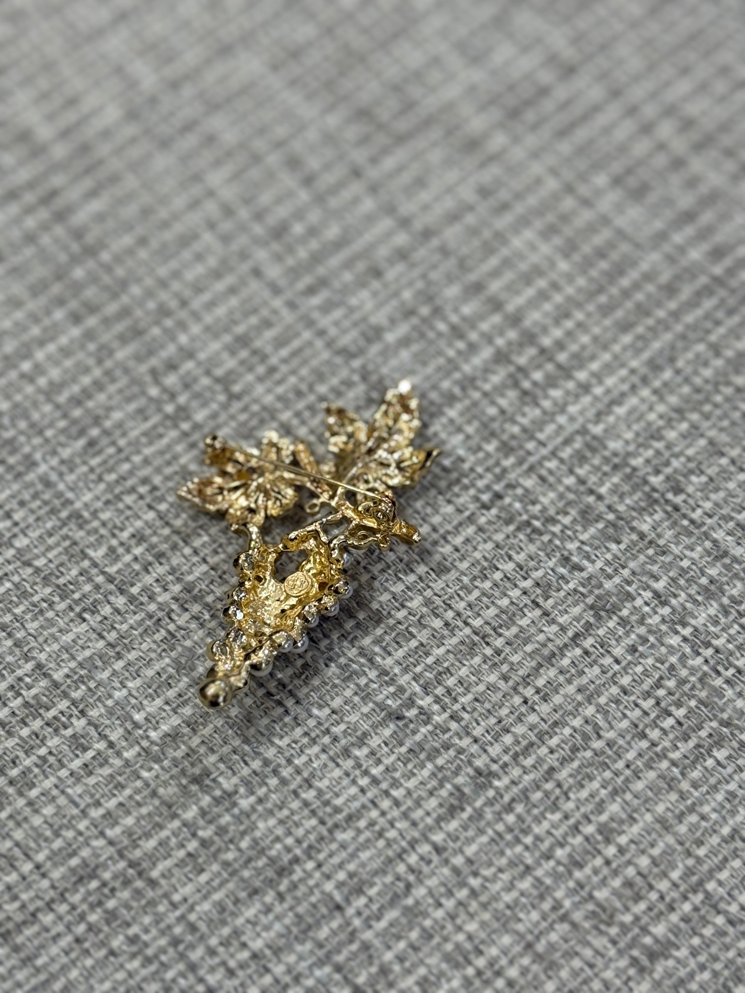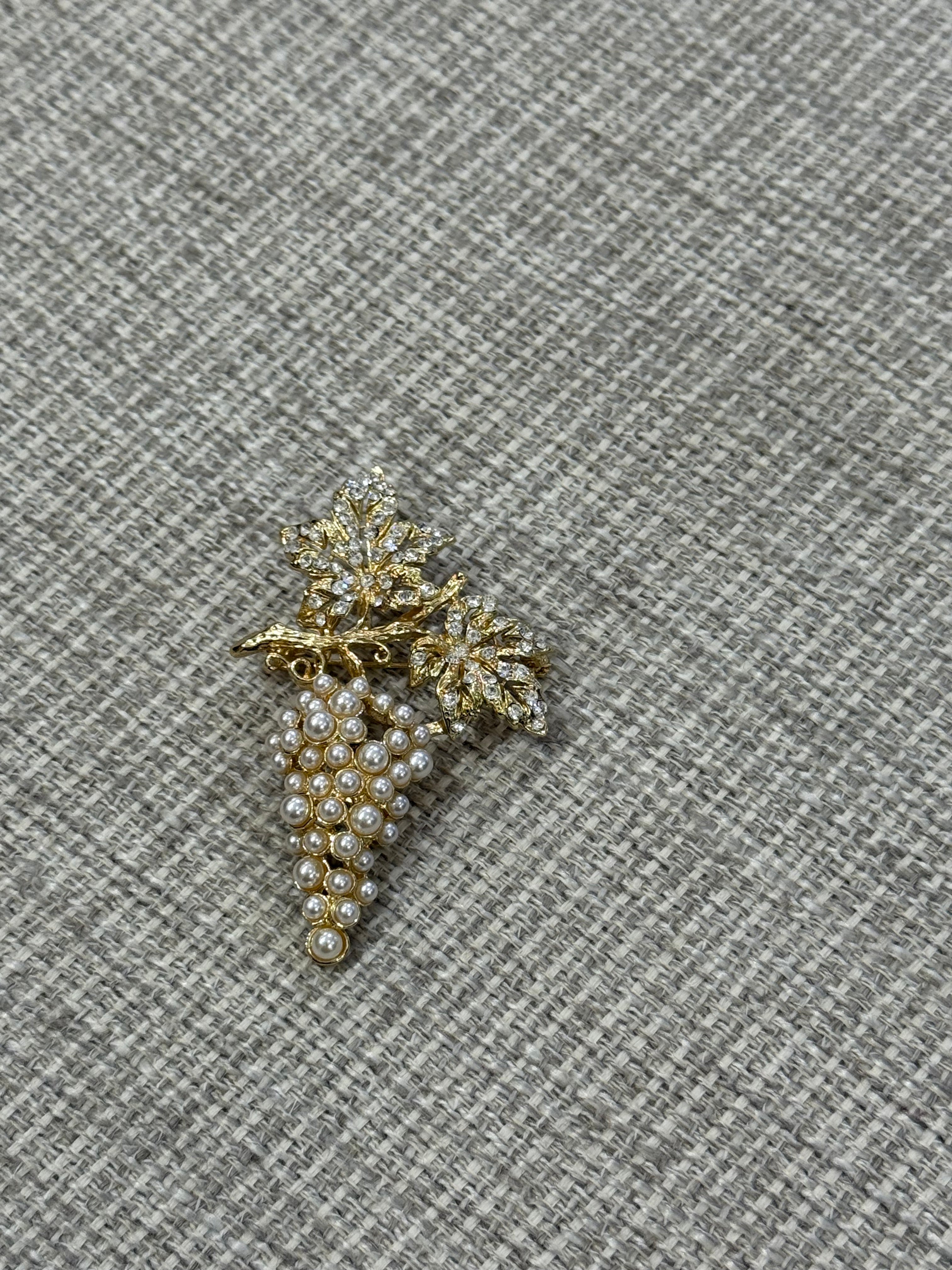 Broche Cacho de Uvas Branco com Pérolas e Strass