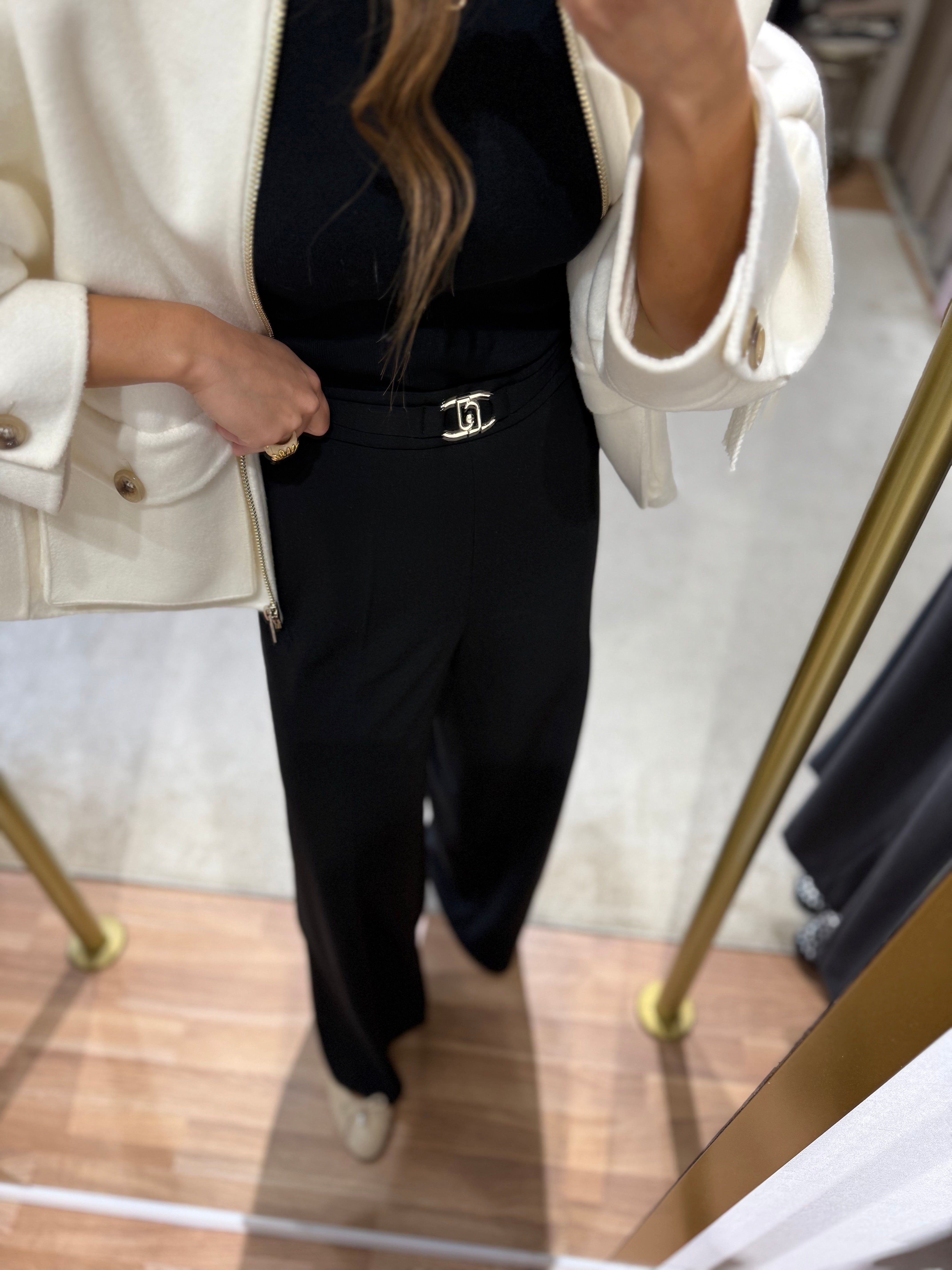 Eleve o seu look com esta elegante calça cropped Liu Jo, que combina sofisticação e detalhe funcional. Com modelo Milano stitch, cintura alta e perna flare encurtada, esta peça traz personalidade e versatilidade ao guarda-roupa