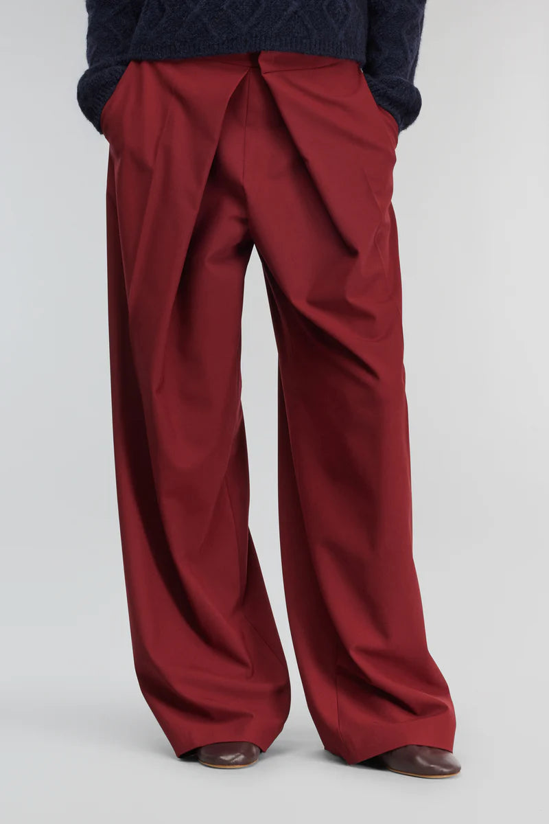 Calça em Lã Bordeaux com Pinças Frontais Vivienne | SEMICOUTURE