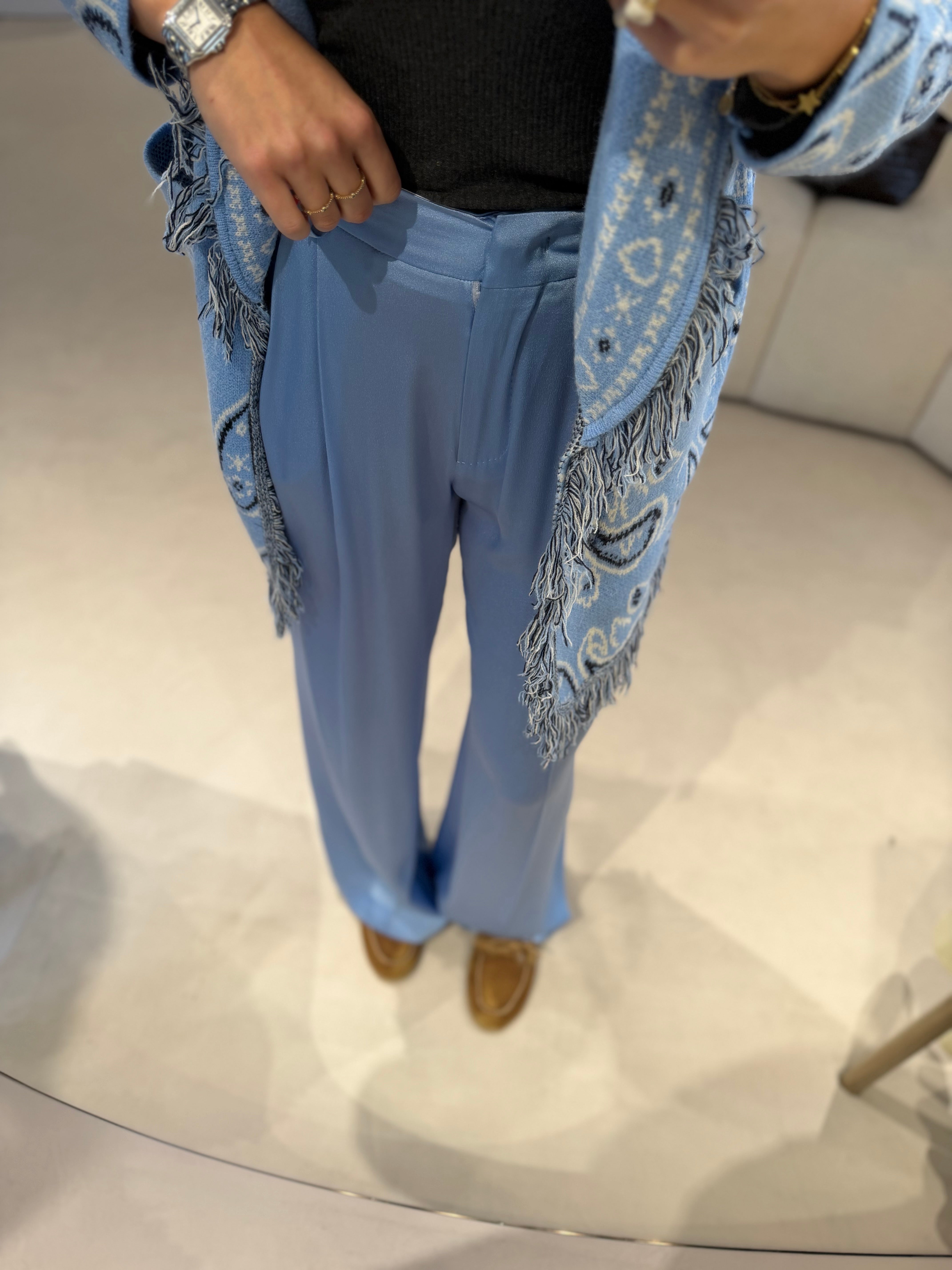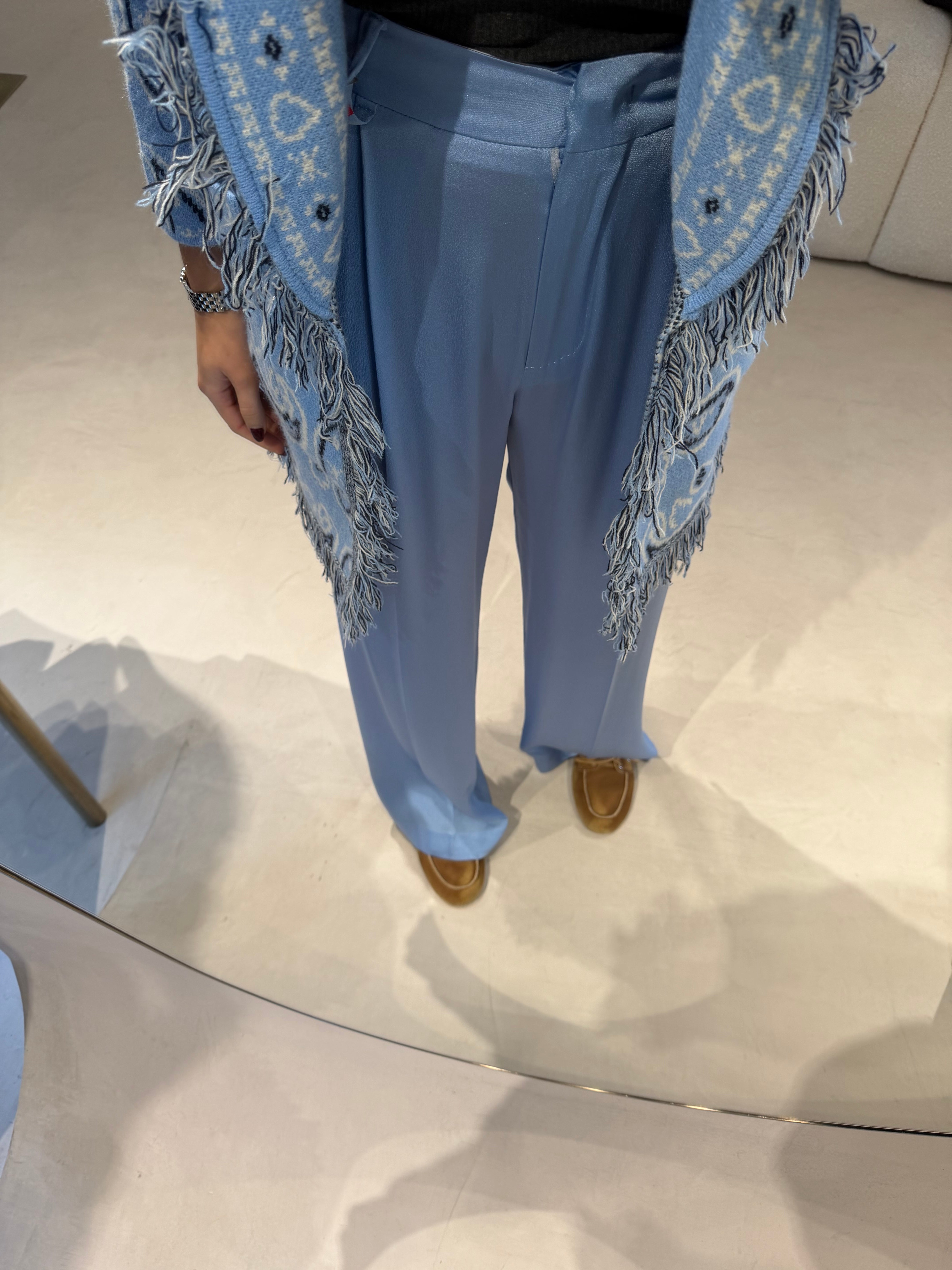 Calça Jasone em tecido acetato e seda com acabamento sofisticado e toque leve, que combina fluidez com um caimento elegante ao longo da perna. Com corte regular fit e perna ampla (wide leg), cria uma silhueta alongada e moderna, enquanto o detalhe de bolso francês adiciona um toque de funcionalidade refinada. O fechamento frontal com gancho masculino e fecho-éclair confere estrutura e um acabamento técnico discreto à peça.