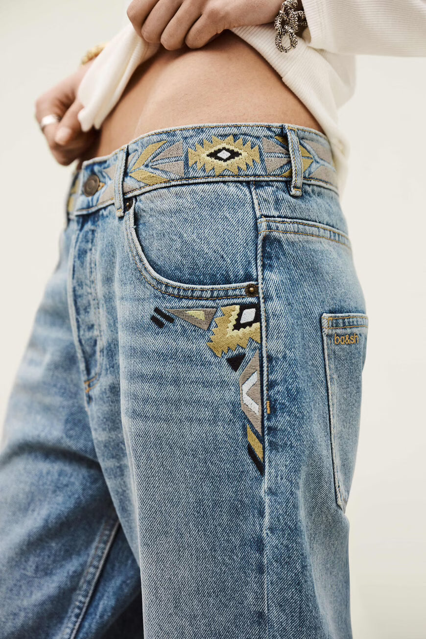 A calça Jeans Rizie Light Used Blue da ba&sh é um denim clássico reinventado com um toque moderno e descontraído. Este modelo apresenta um corte reto (“straight-fit”) com lavagem “light used” em azul claro, conferindo um visual effortless e contemporâneo que funciona do dia a dia a ocasiões mais casuais com estilo parisiense.