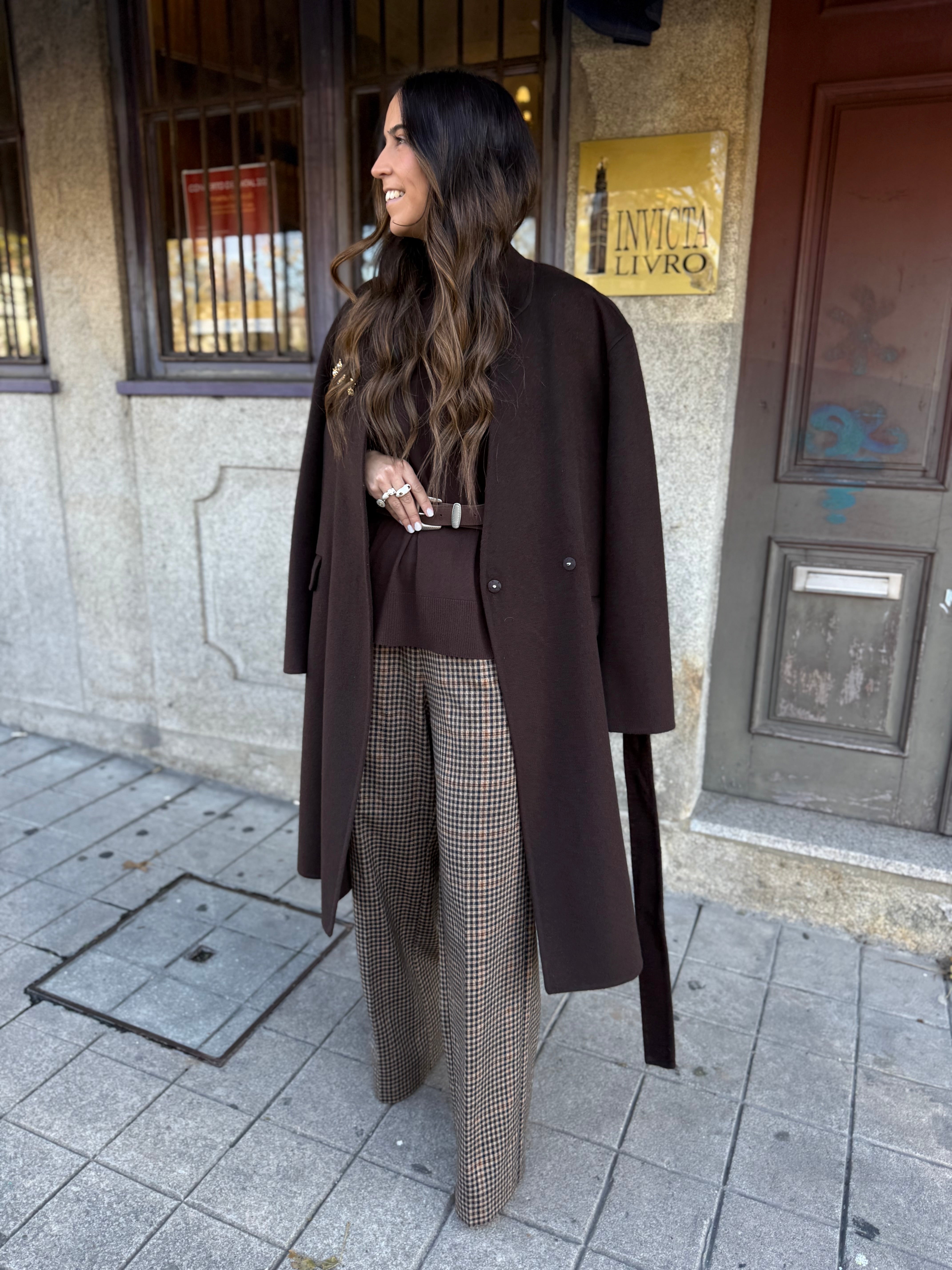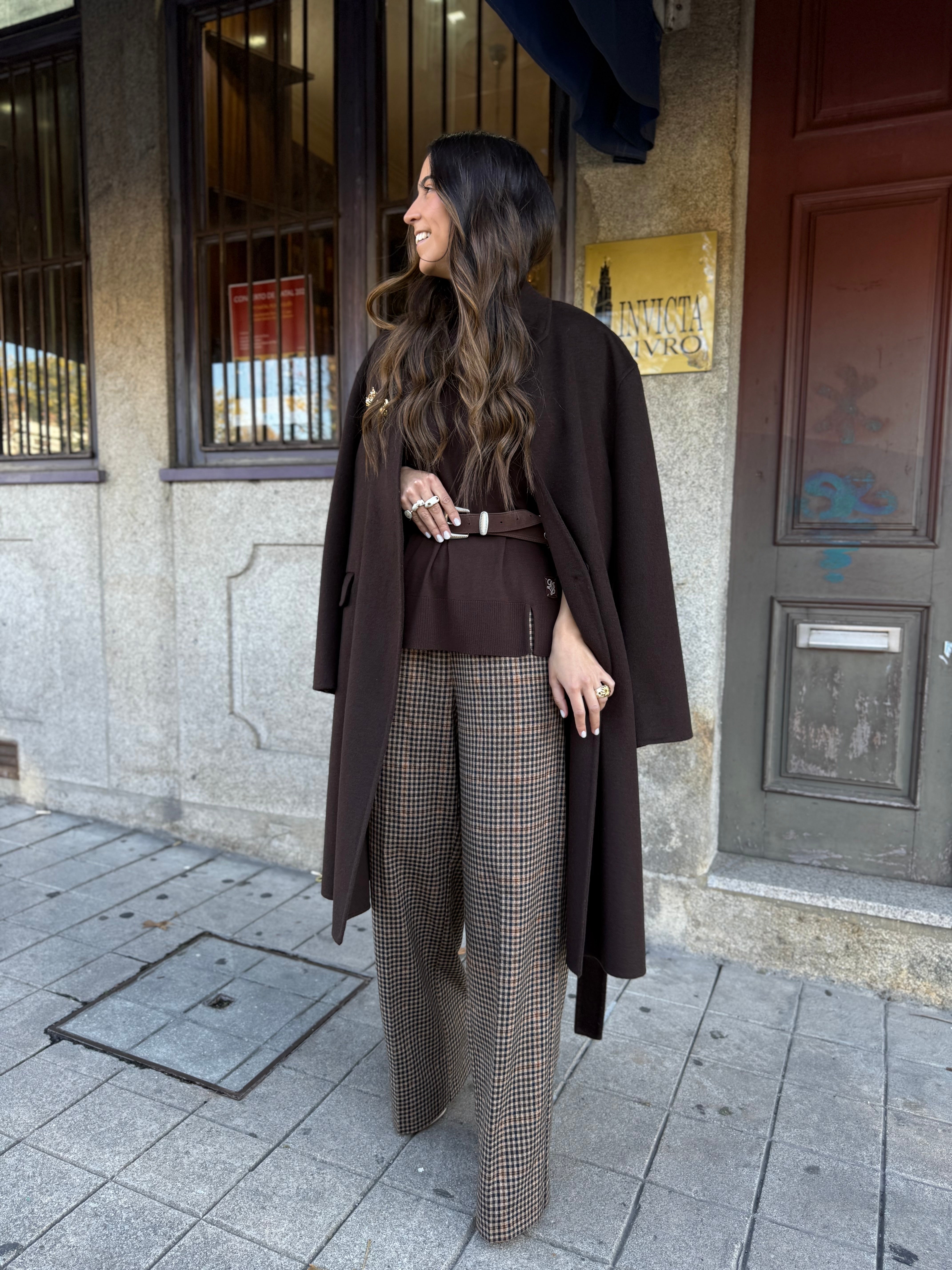 Calça Palazzo em Xadrez Castanho | Liu Jo