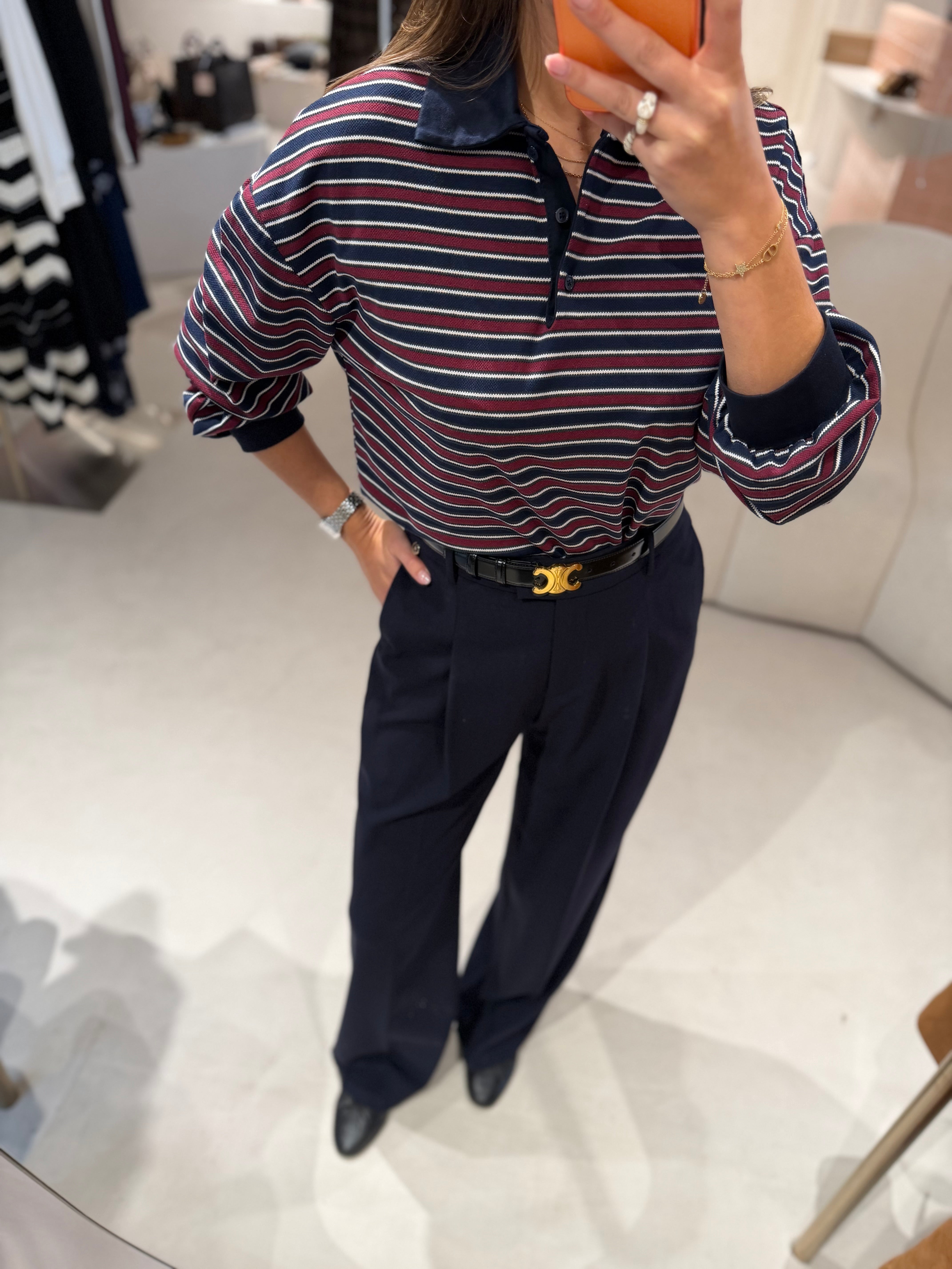As calças palazzo Liu Jo em tom Sea Blue combinam sofisticação e conforto num design fluido e contemporâneo. Com corte amplo e tecido stretch, oferecem um caimento leve e elegante que valoriza a silhueta. As pregas frontais e o logótipo metálico discreto reforçam o caráter refinado da peça, enquanto os bolsos laterais e o fecho oculto garantem funcionalidade com acabamento limpo. Totalmente forradas, são ideais para compor looks versáteis com um toque de estilo italiano inconfundível.