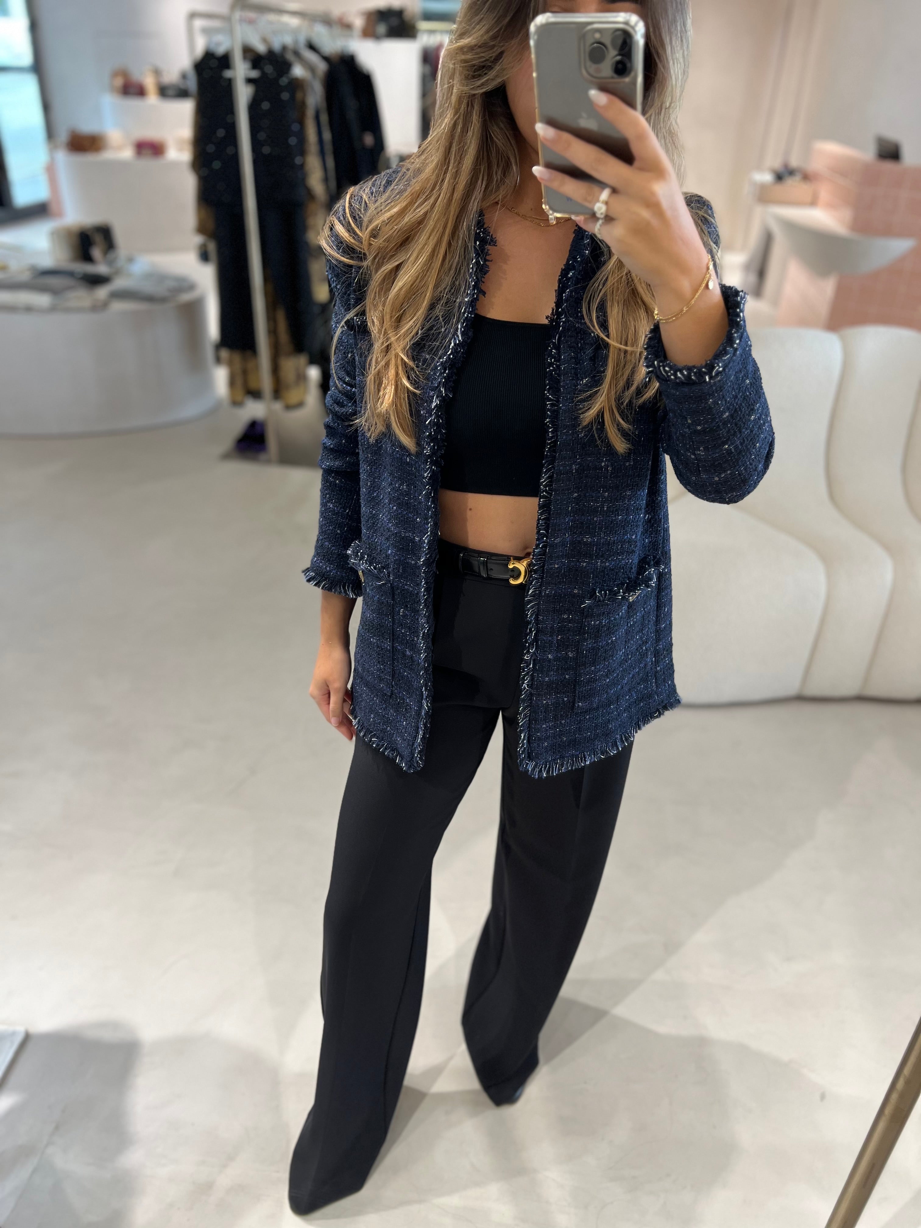 A modelo está a vestir o tamanho 42IT (S).
