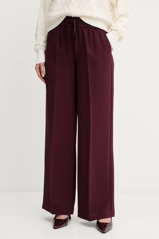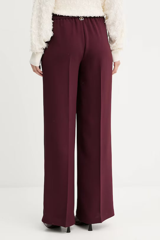 Calça Wide Fit em Crepe Bordeaux | TWINSET