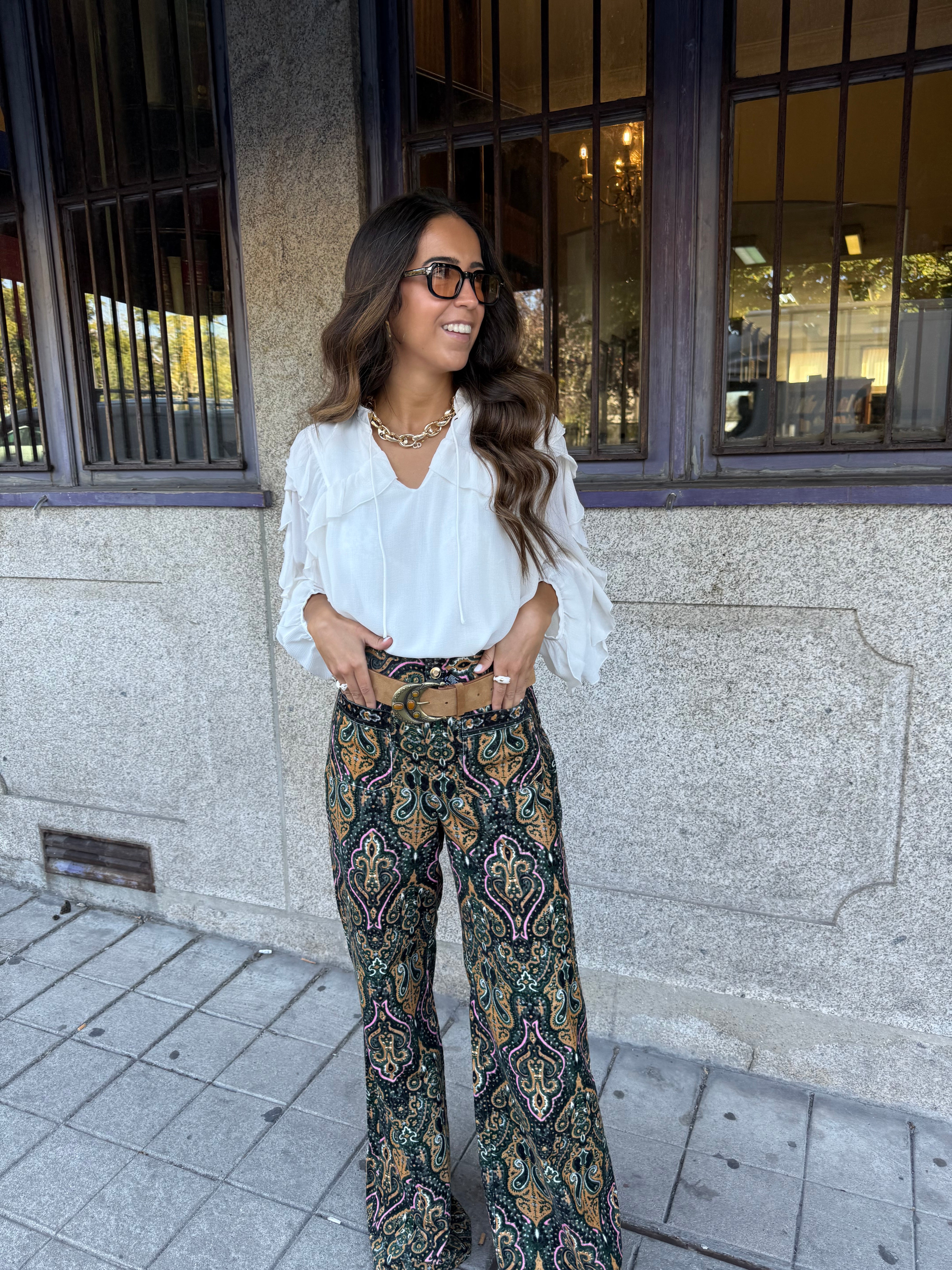 As calças Swae Multicor da ba&sh combinam estilo vibrante com conforto. Com um corte reto e padrão multicolorido marcante, são feitas em 100% algodão, oferecendo leveza e respirabilidade. Perfeitas para looks casuais ou criativos, combinam com peças neutras ou acessórios ousados. Uma peça versátil com a assinatura cool e consciente da ba&sh.