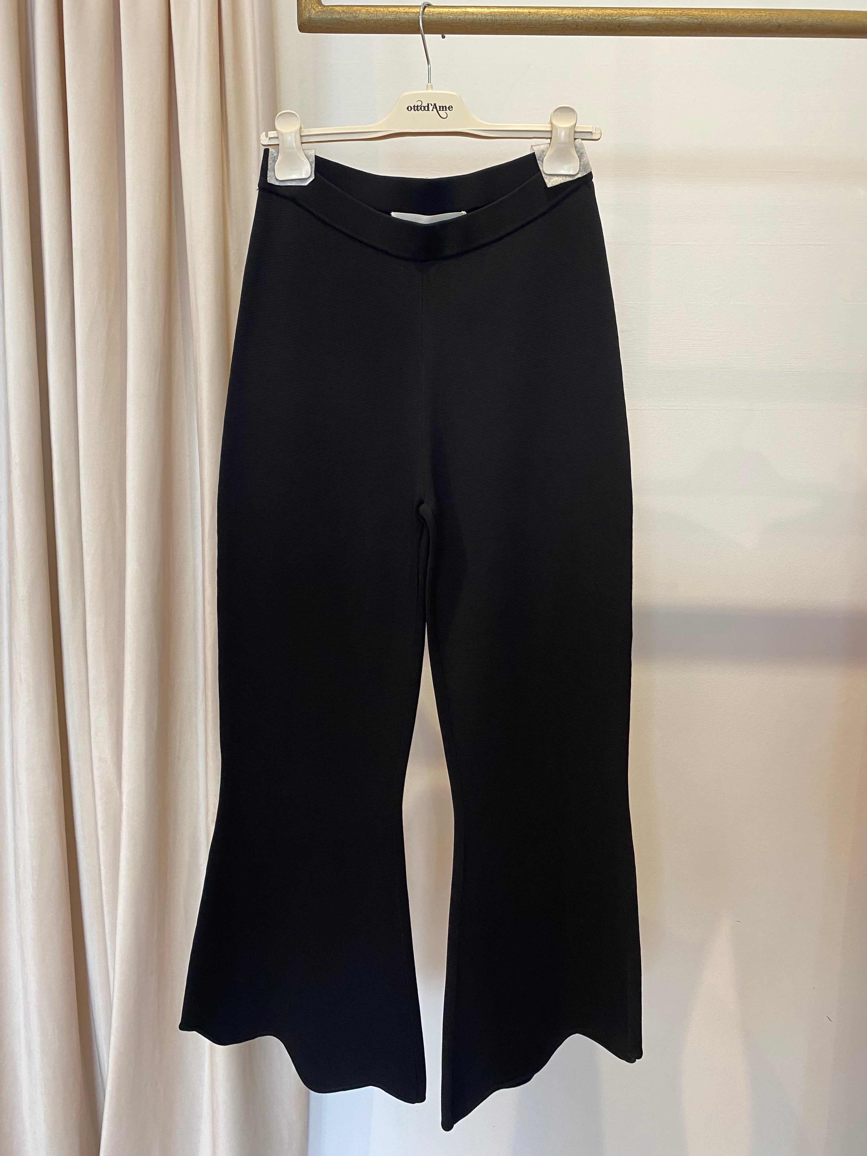Calças Malene Birger com cós elástico e bainha ondulada em preto.