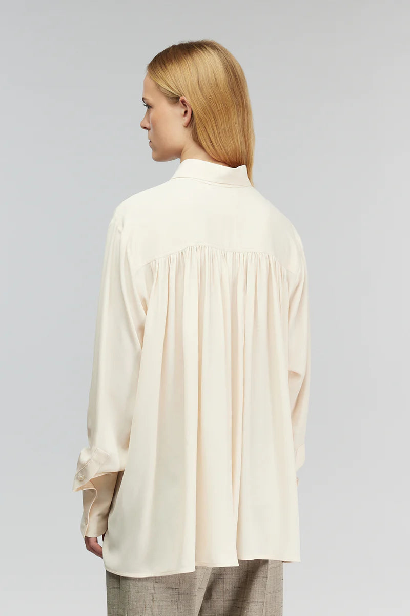 Camisa em Crepe de Chine Bege com Painel em Popelina Branco Krizia | SEMICOUTURE