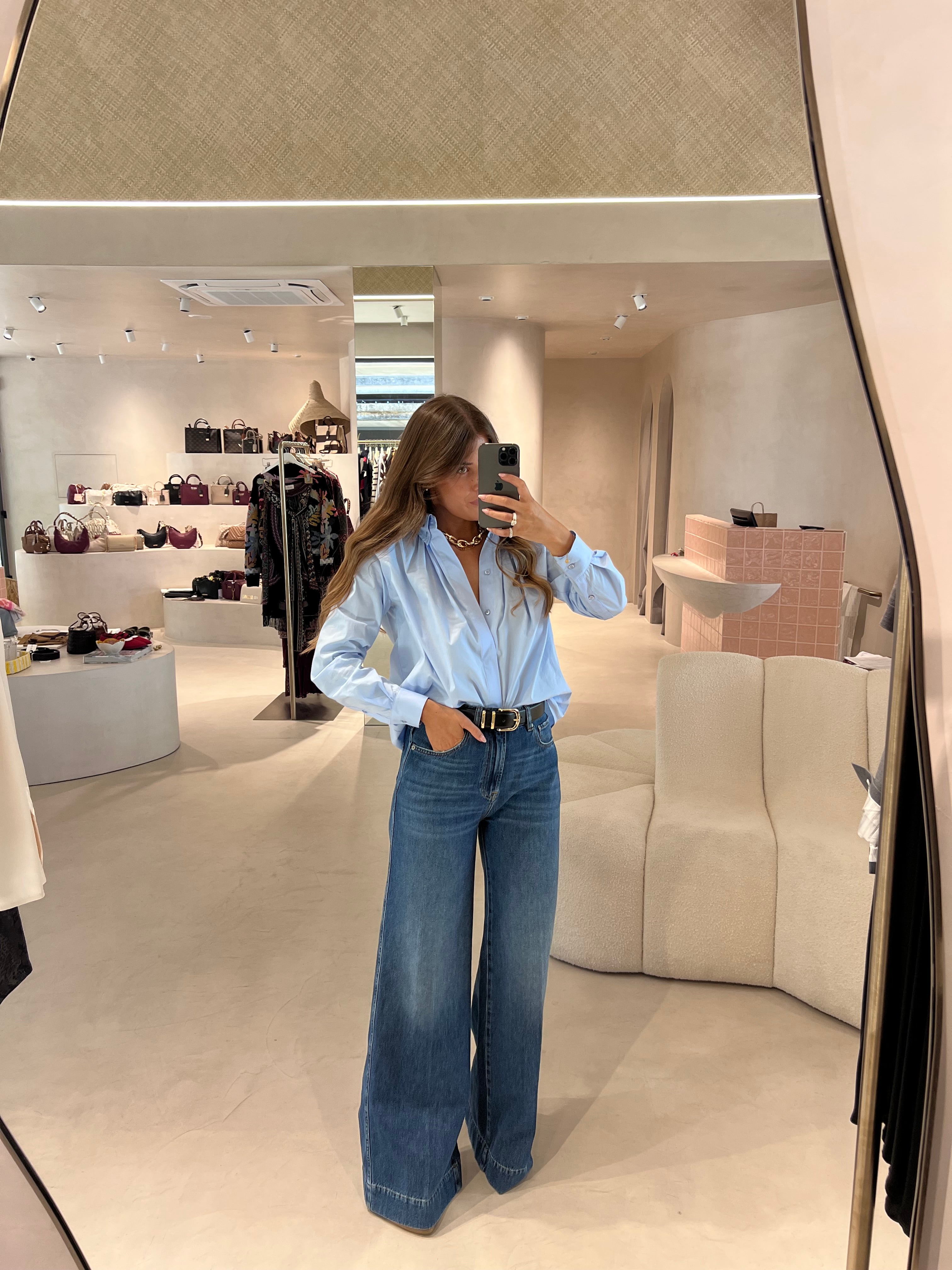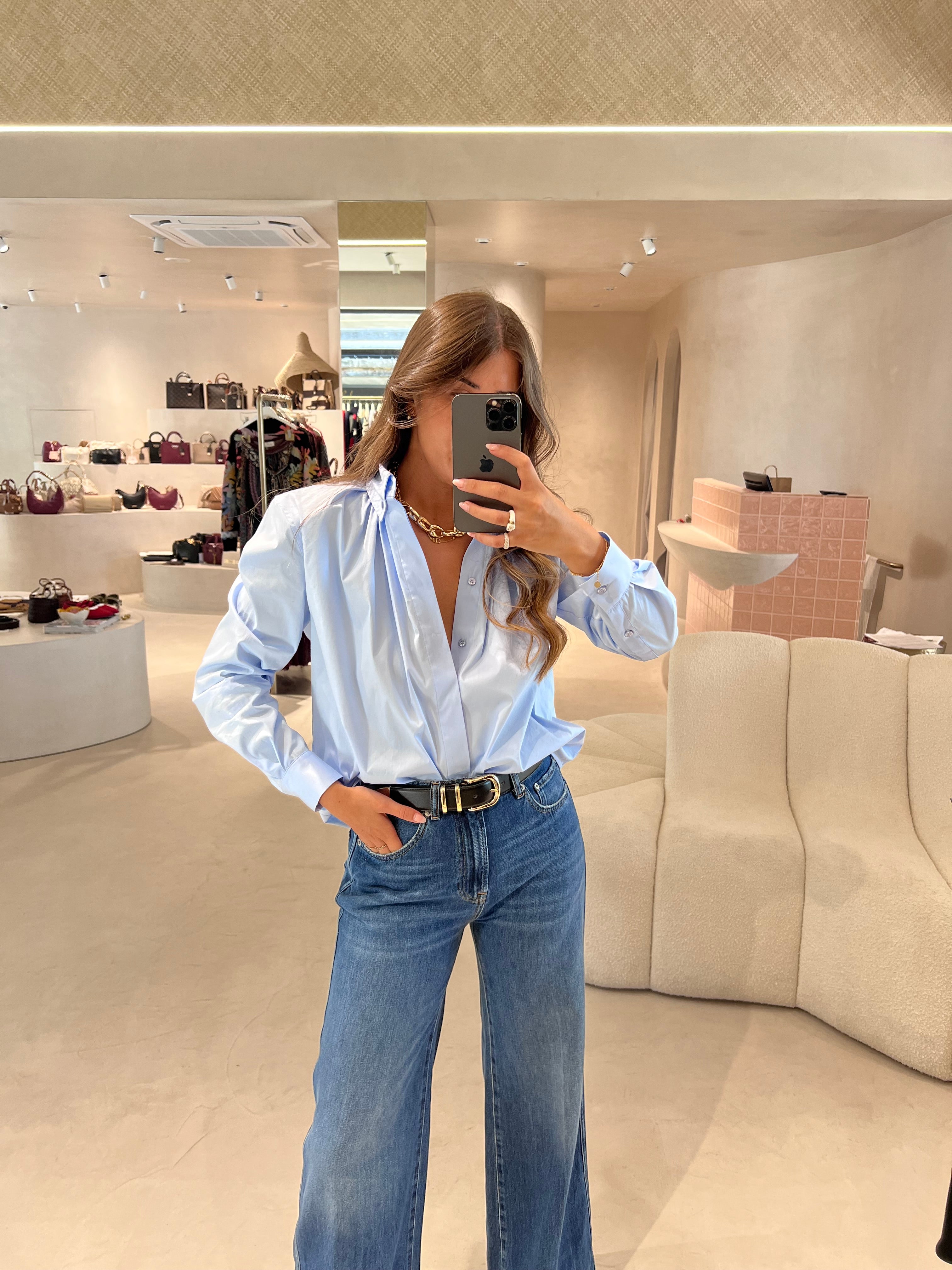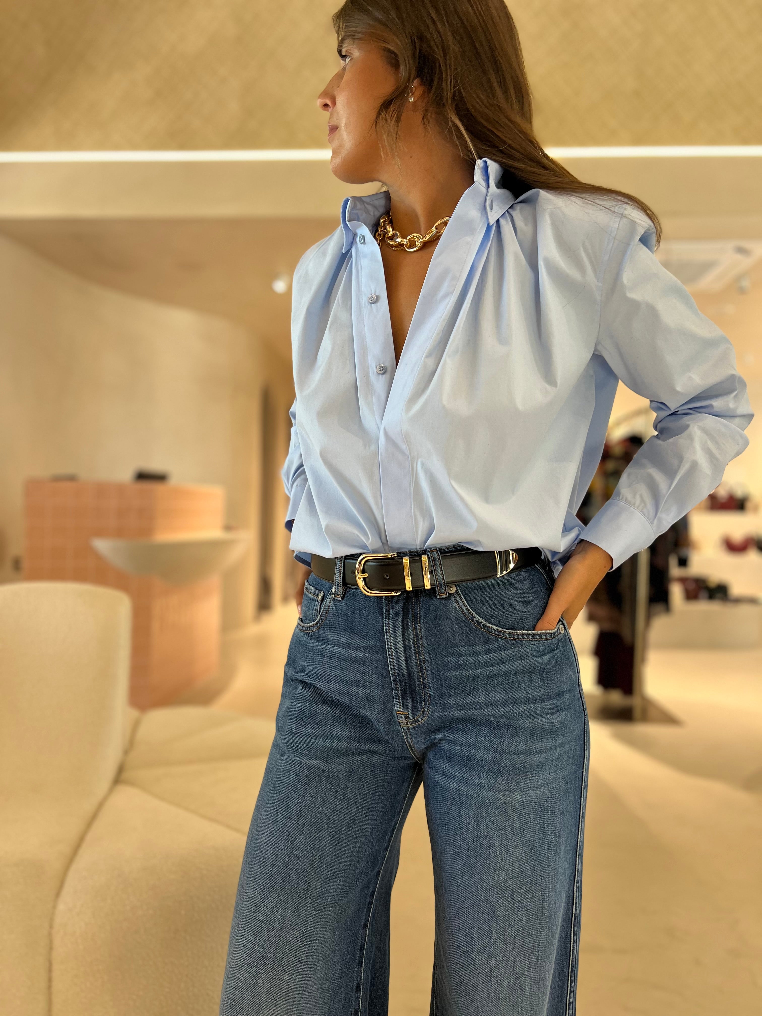 Camisa em Popeline Azul Francesca | SEMICOUTURE