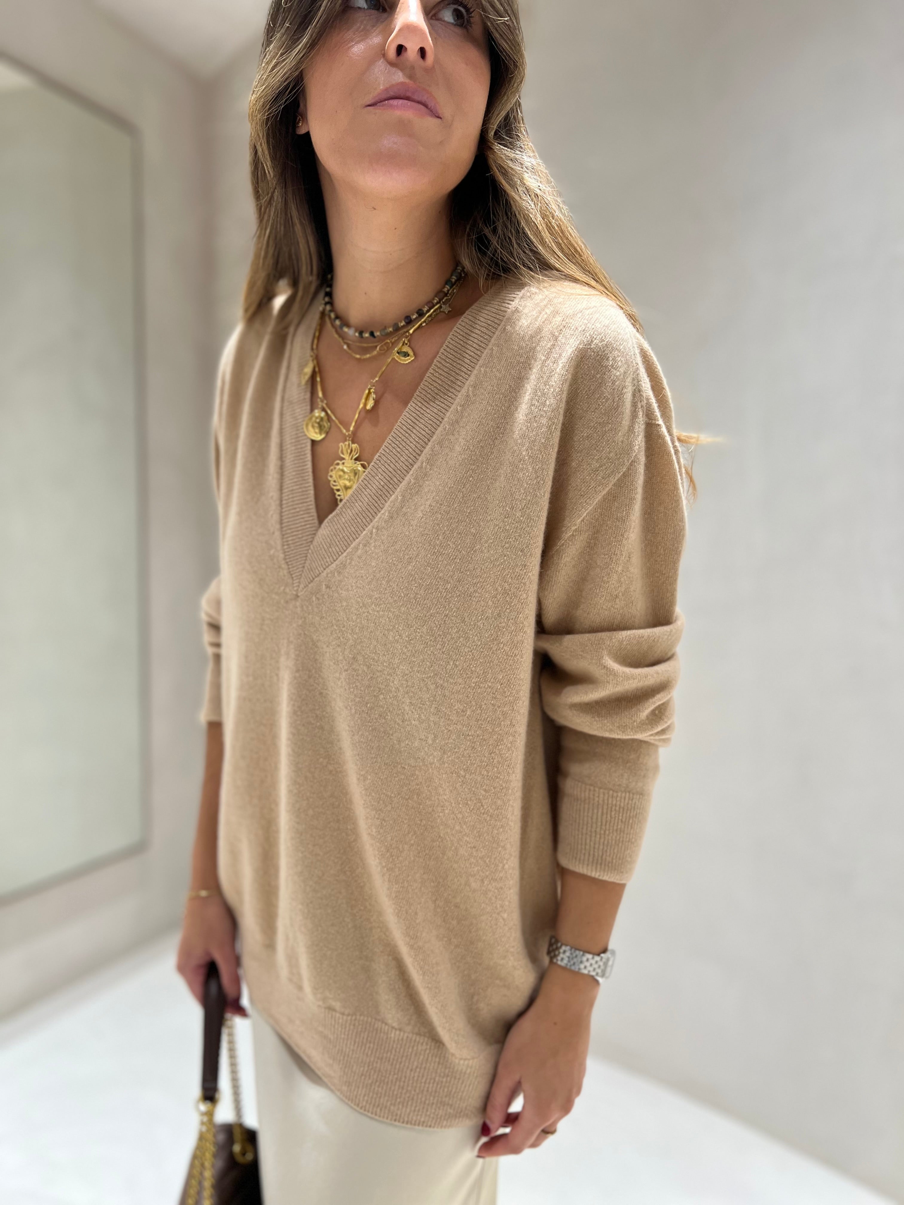 Camisola em malha de lã e caxemira Semicouture em preto de corte regular, gola em bico e punhos canelados.