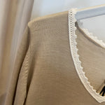 Camisola em Lã Merino e Gola em Croché Bege