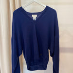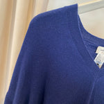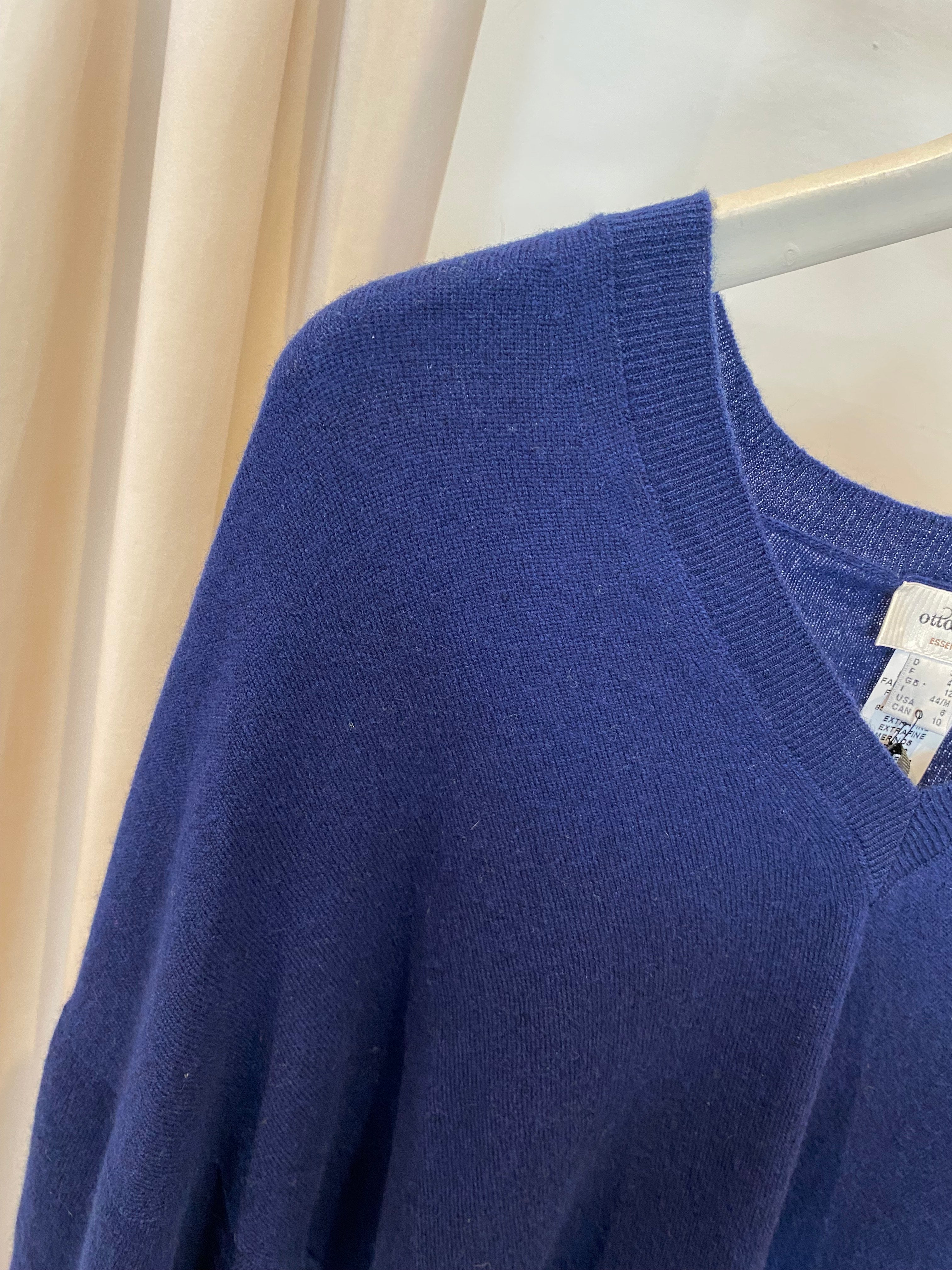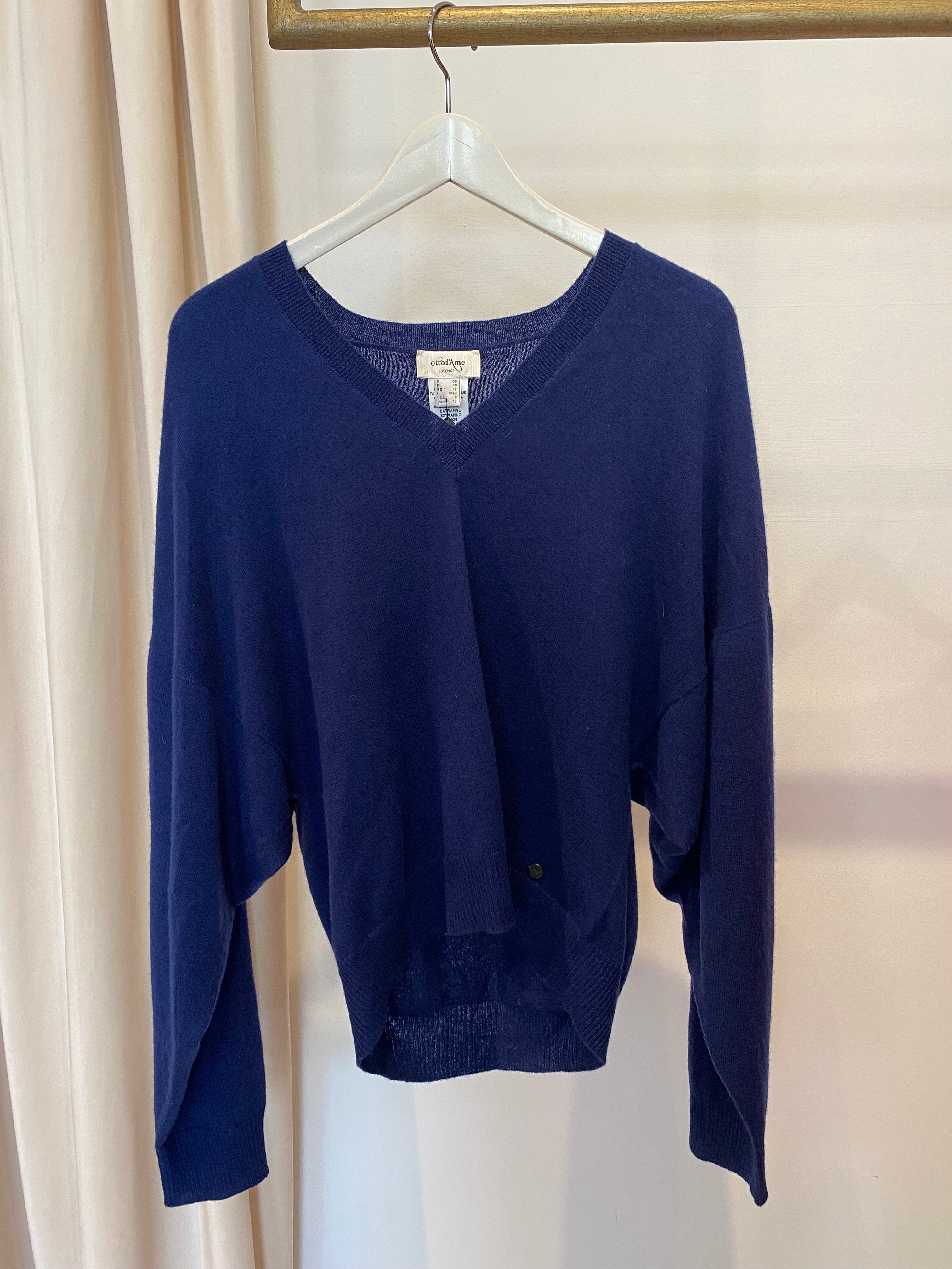 Camisola Ottod'Ame em lã merino azul marinho e decote em bico.