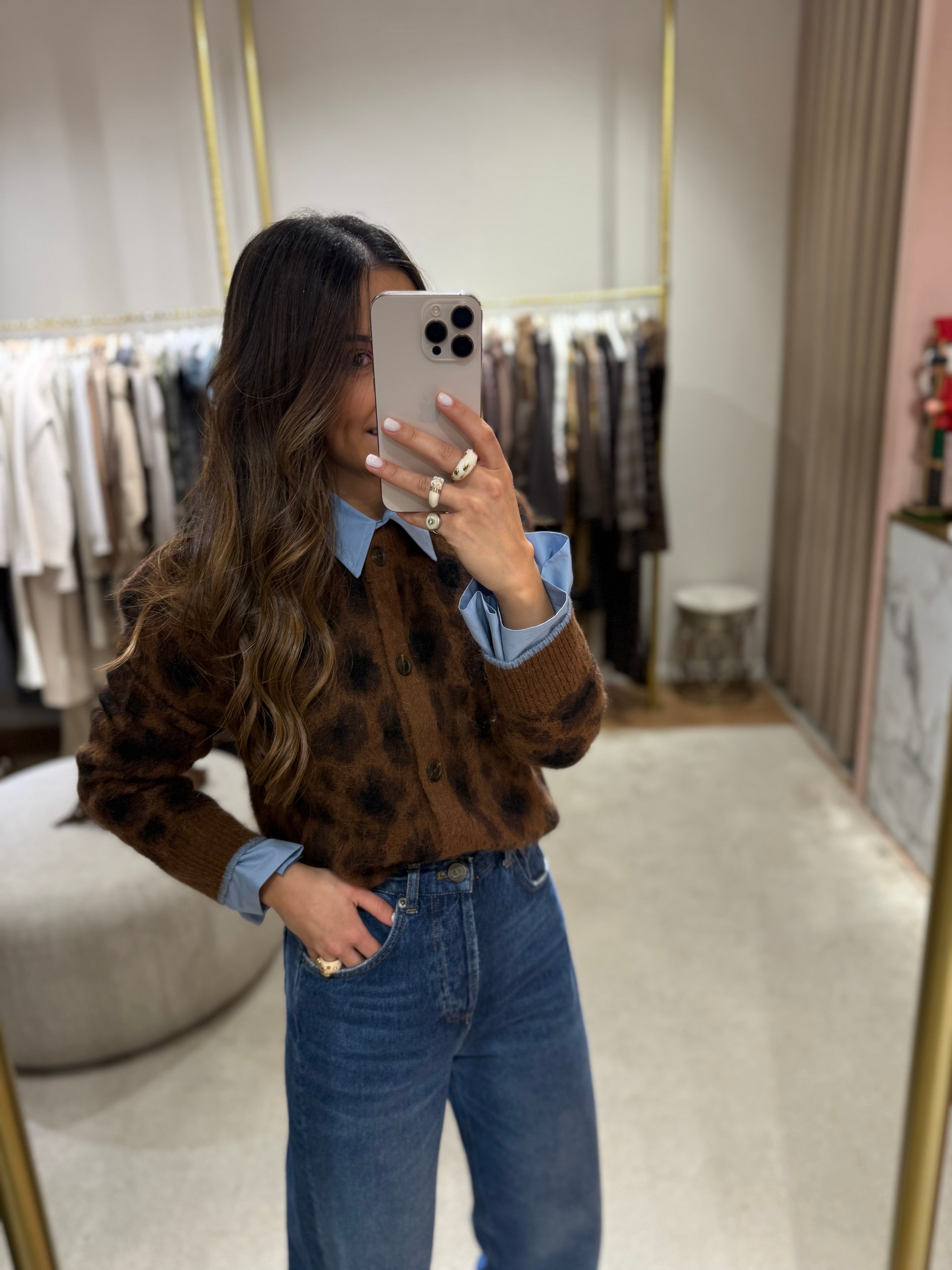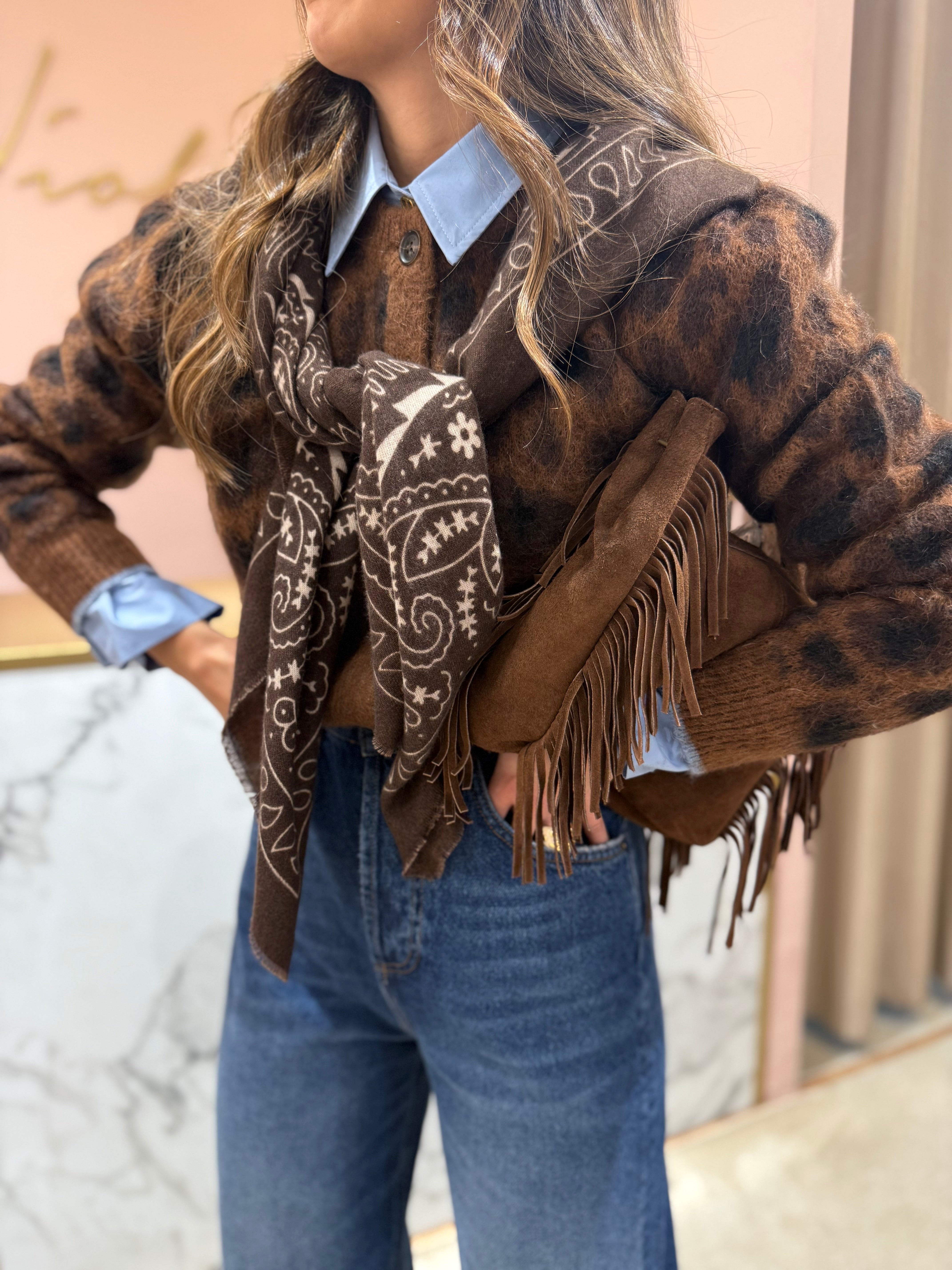 Cardigan Curto em Animal Print Castanho | Scotch & Soda
