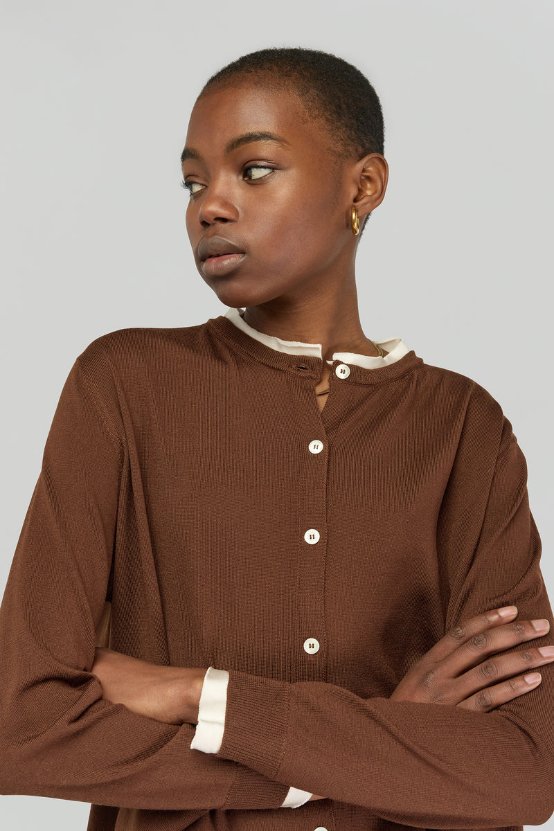Cardigan de Lã Premium Castanho | Semicouture