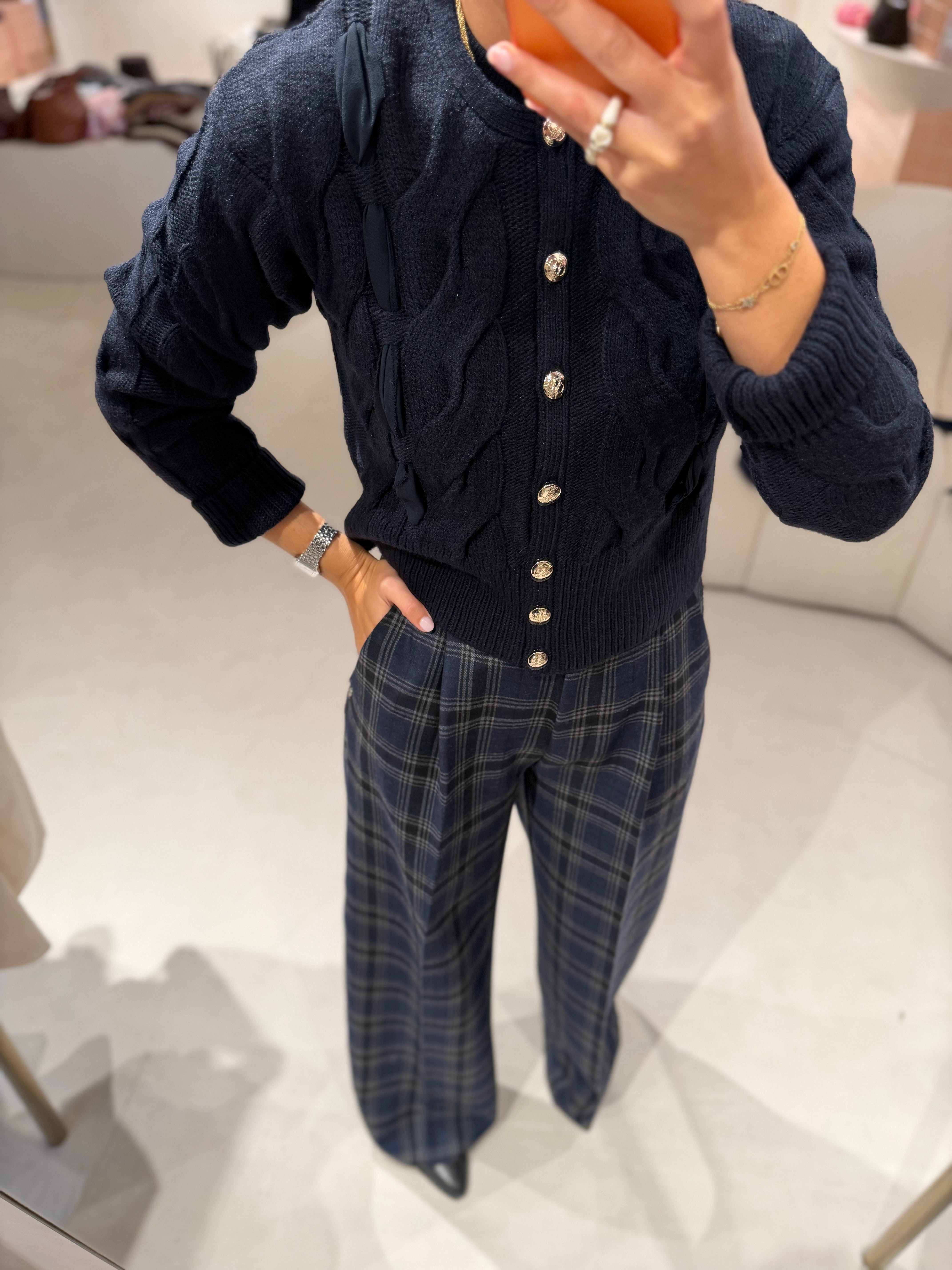 Cardigan Azul Marinho em Malha de Lã com Botões Dourados | Liu Jo