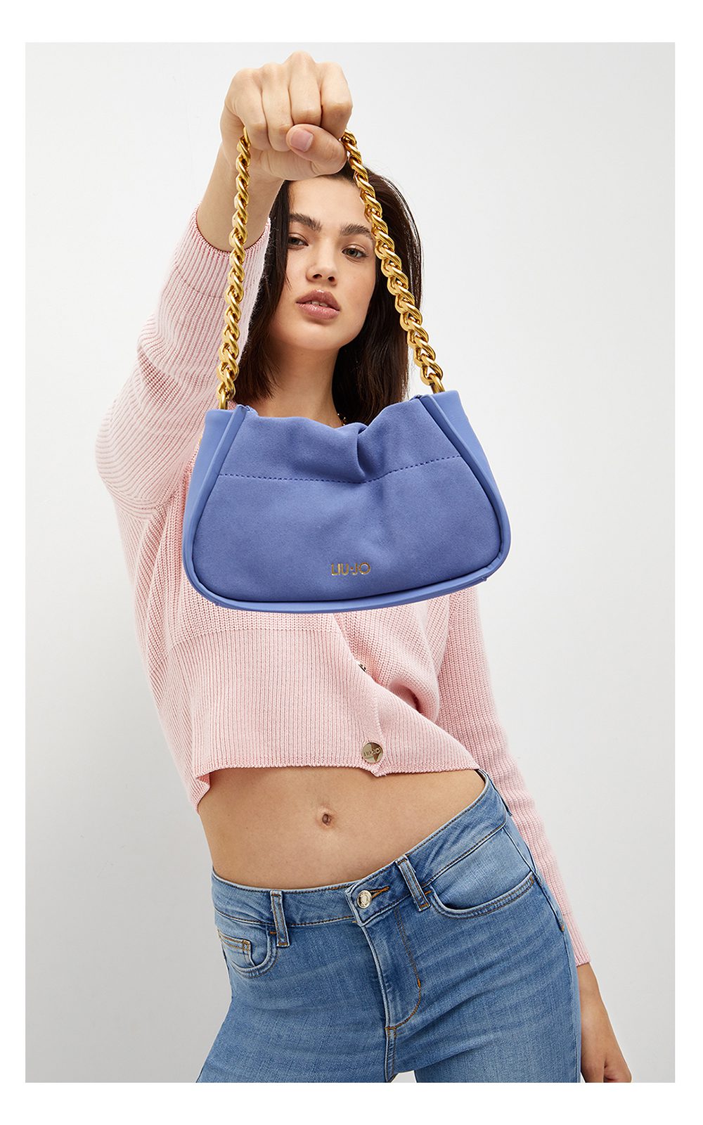 Carteira mini. Alça de ombro em corrente. Compartimento principal.