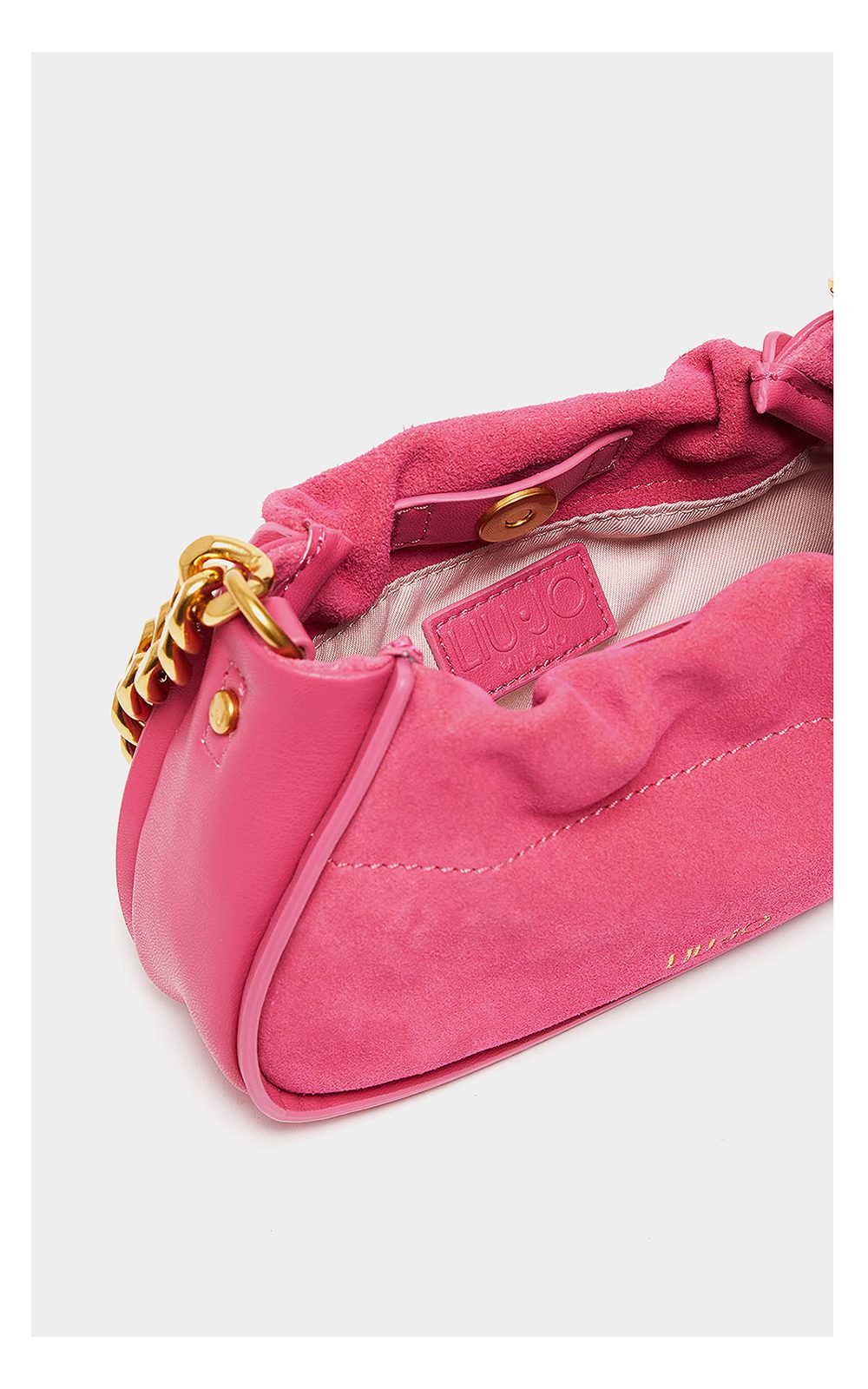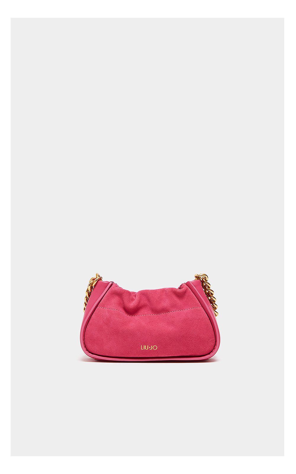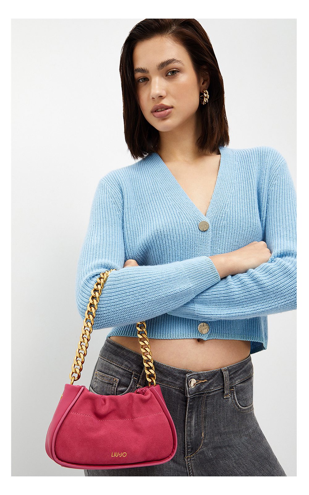 Carteira mini. Alça de ombro em corrente. Compartimento principal.