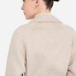 Casaco em mistura de lã‑baize com corte sofisticado e acabamento refinado. Possui gola com lapela, bolsos laterais e cinto tonal com fivela D‑ring para marcar a cintura. Forrado, ideal para transições de estação.