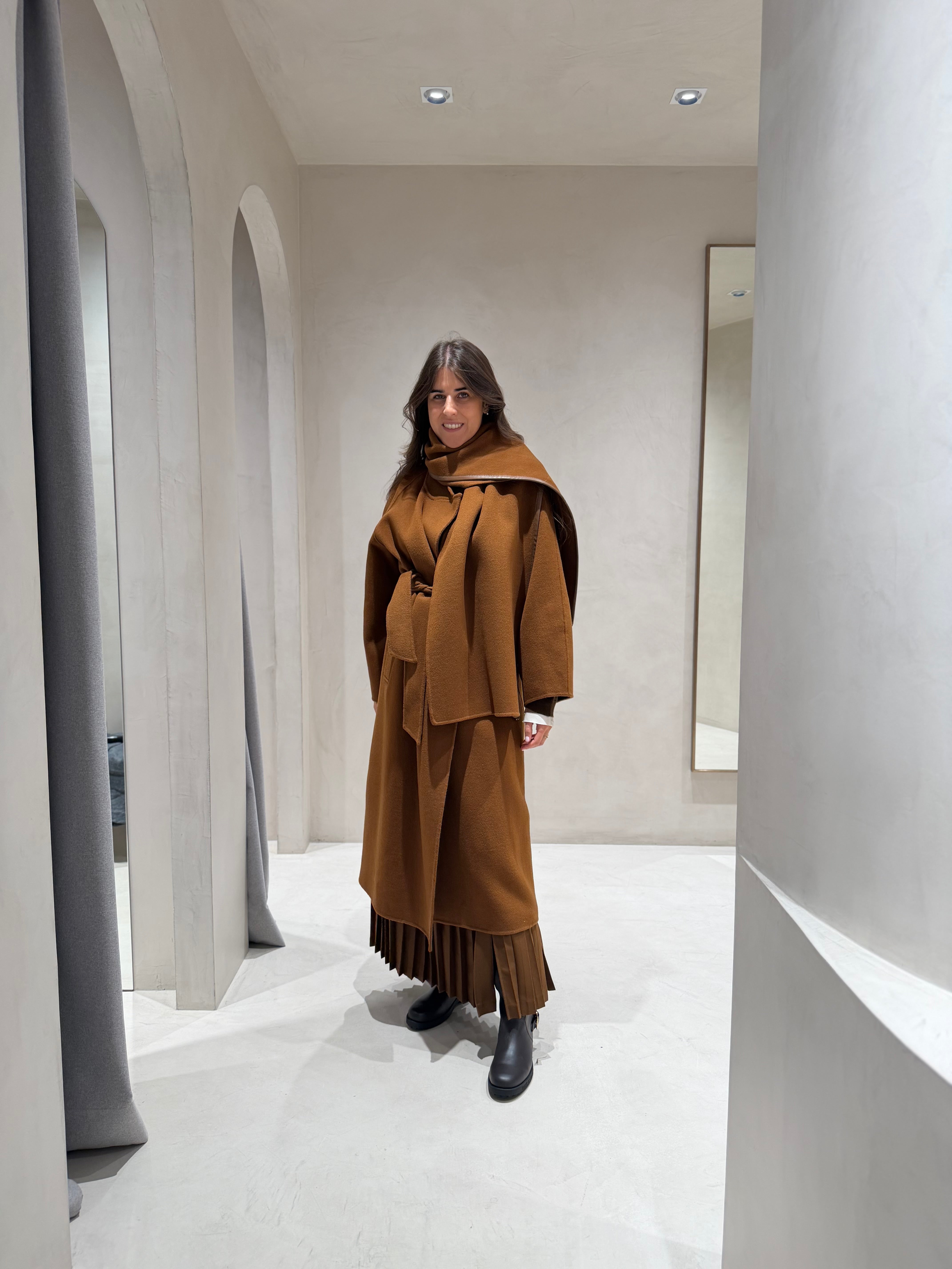 casaco Noah Coat da Liviana Conti traz uma estética refined com detalhes que marcam presença: comprimento longo, modelagem ampla com ombros estruturados, gola ampla e lapela pronunciada, além de bolsos laterais visíveis que adicionam funcionalidade sem perder a sofisticação. É ideal para sobrepor sobre looks monocromáticos ou peças mais ajustadas, criando contraste e elegância.