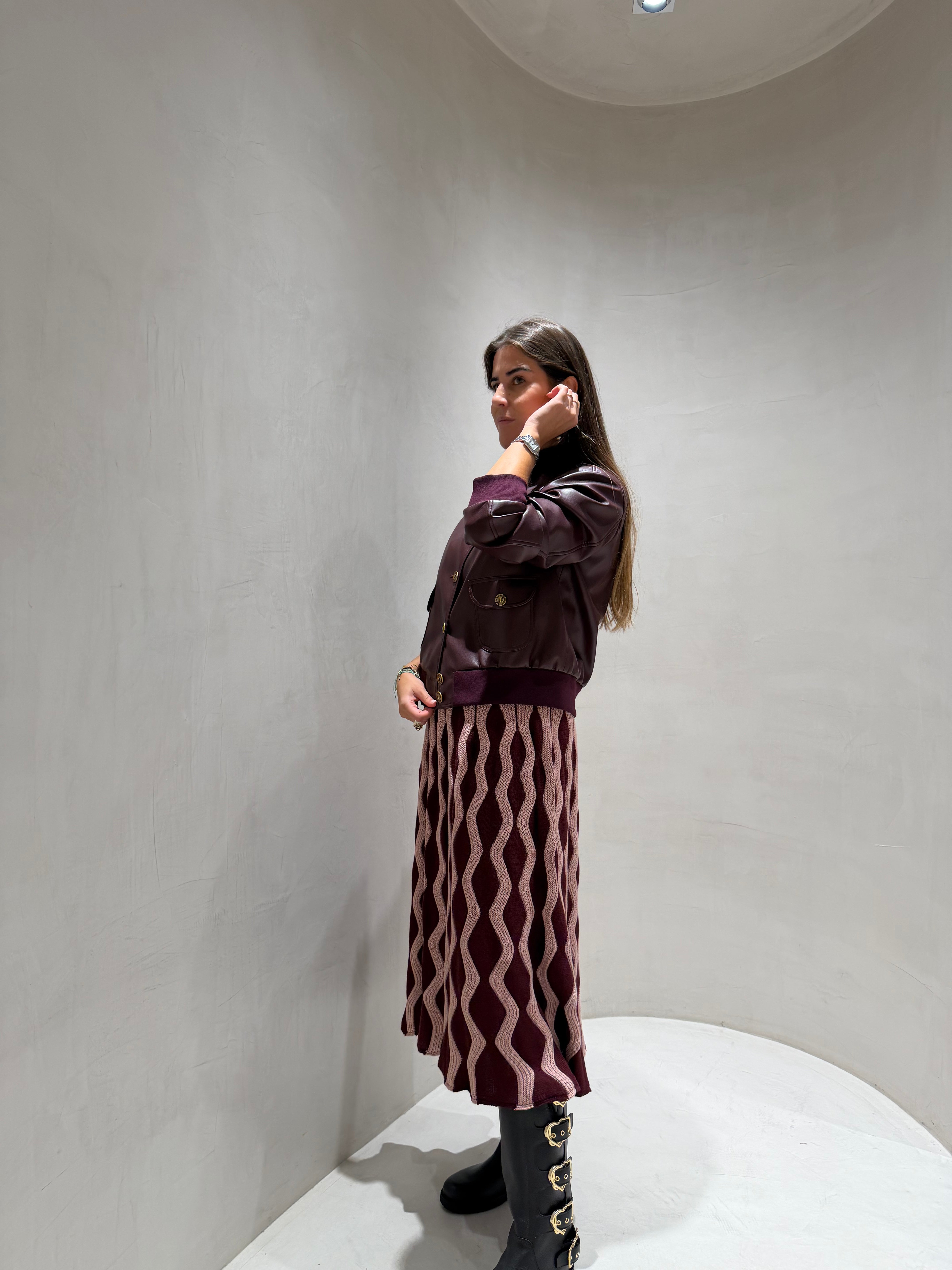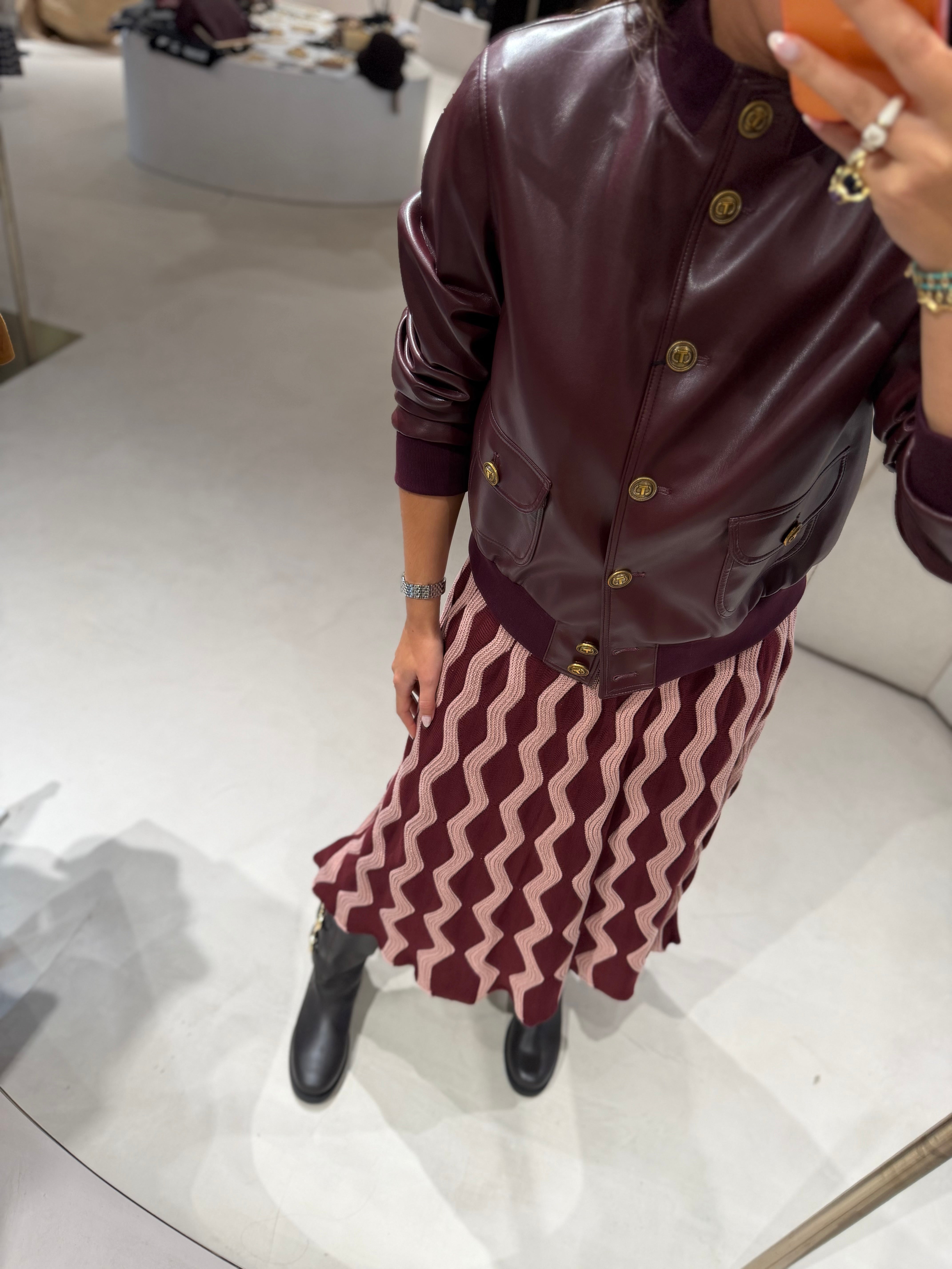 Casaco em Pele Sintética Bordeaux com Botões | TWINSET