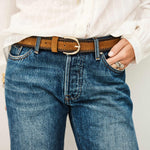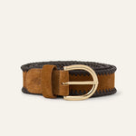 O cinto Brosco da ba&sh é um acessório versátil e elegante em couro camel com fivela metálica discreta. Ideal para marcar a cintura, combina facilmente com vestidos, camisas oversized ou casacos estruturados.