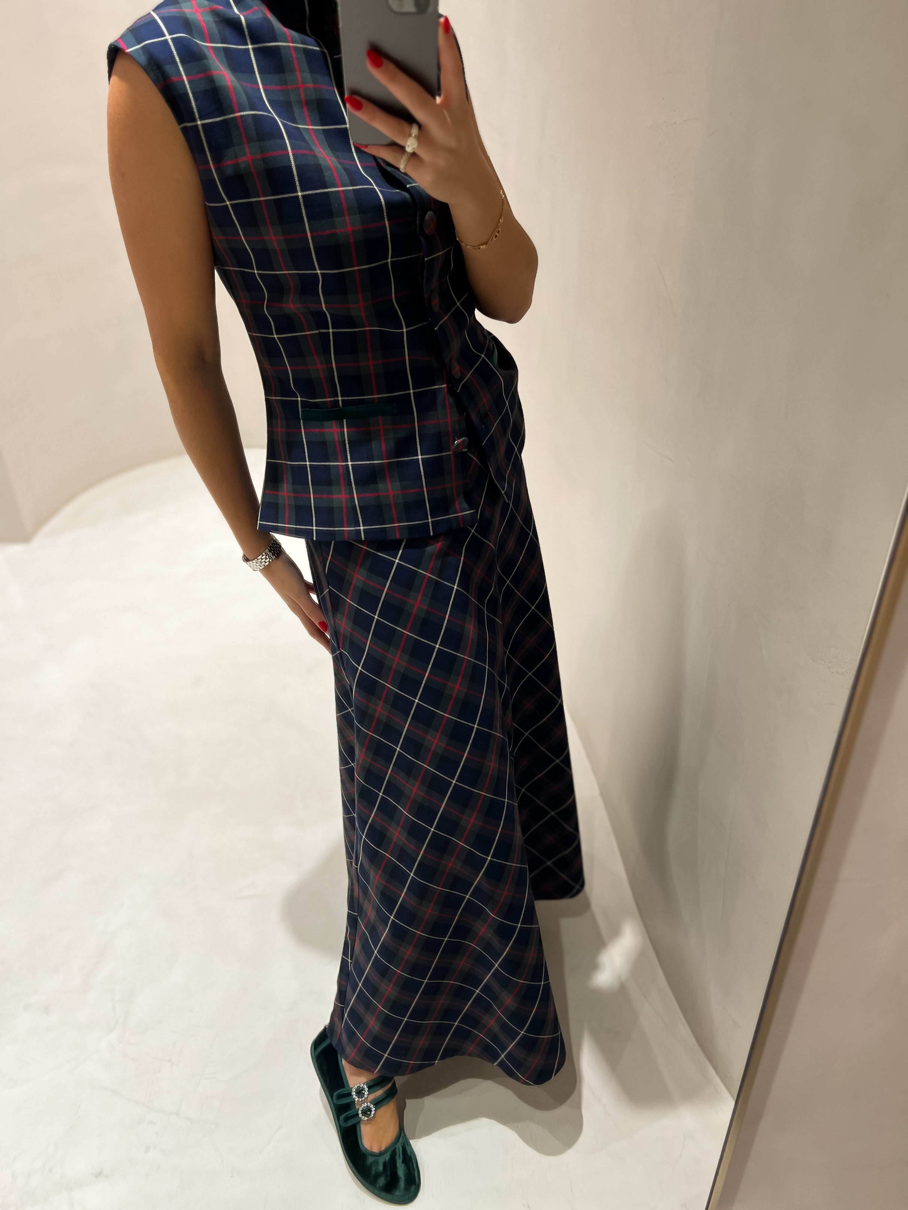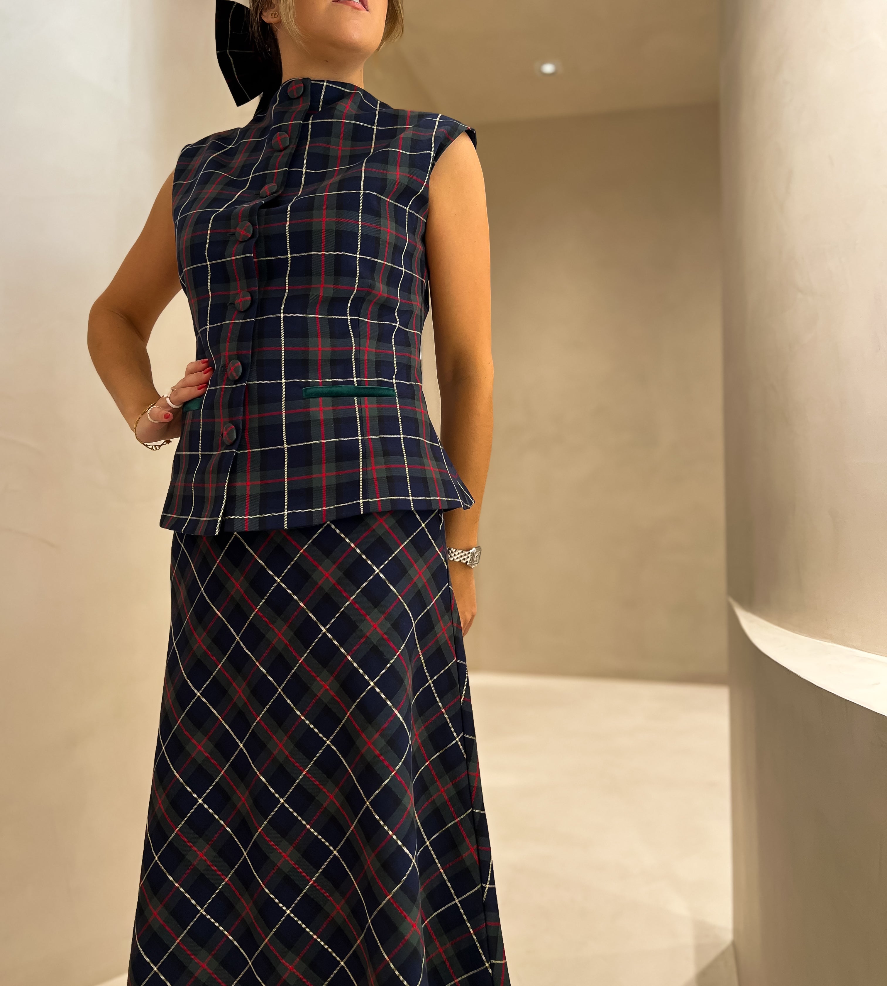 Conjunto de saia e colete de criação exclusiva Violeta x Francisca.