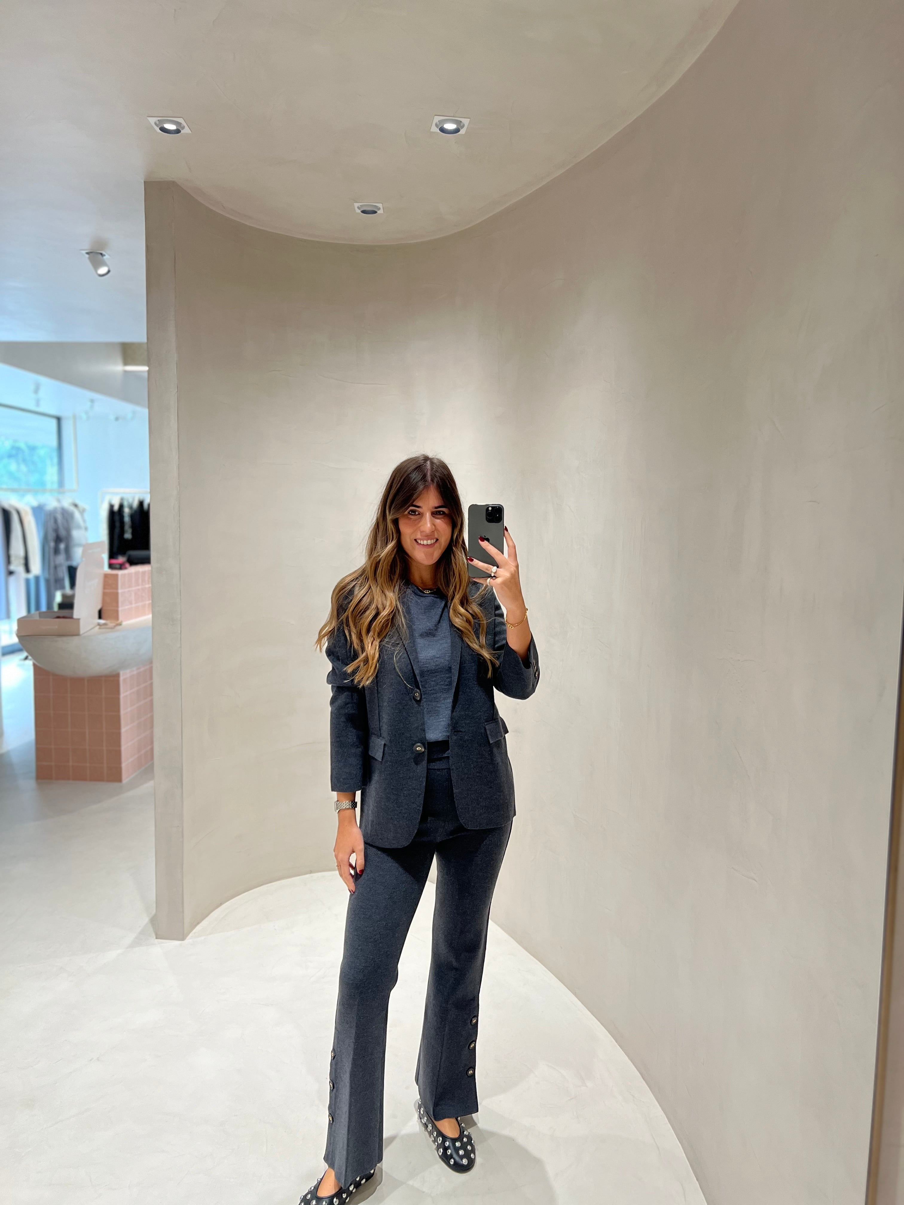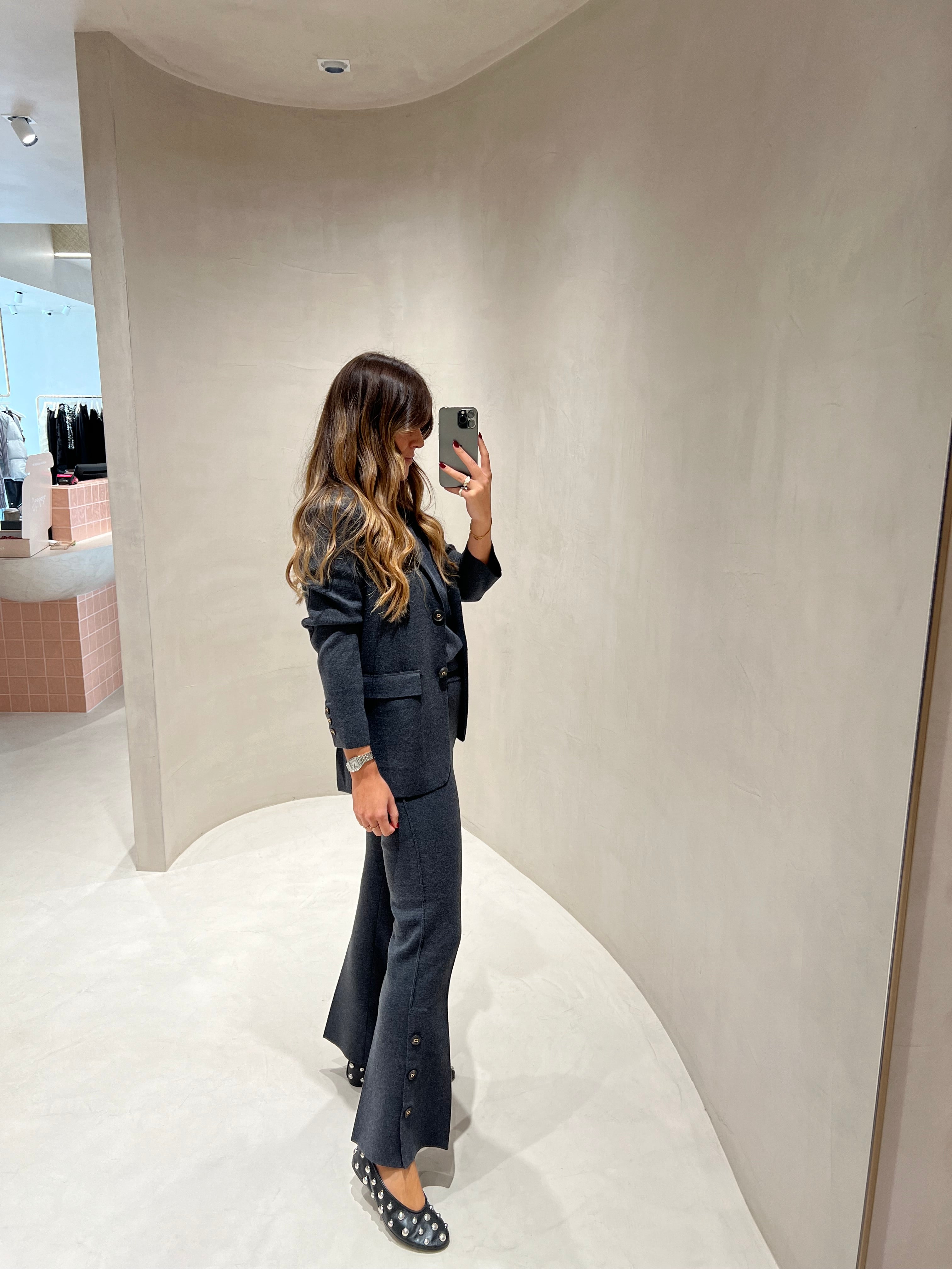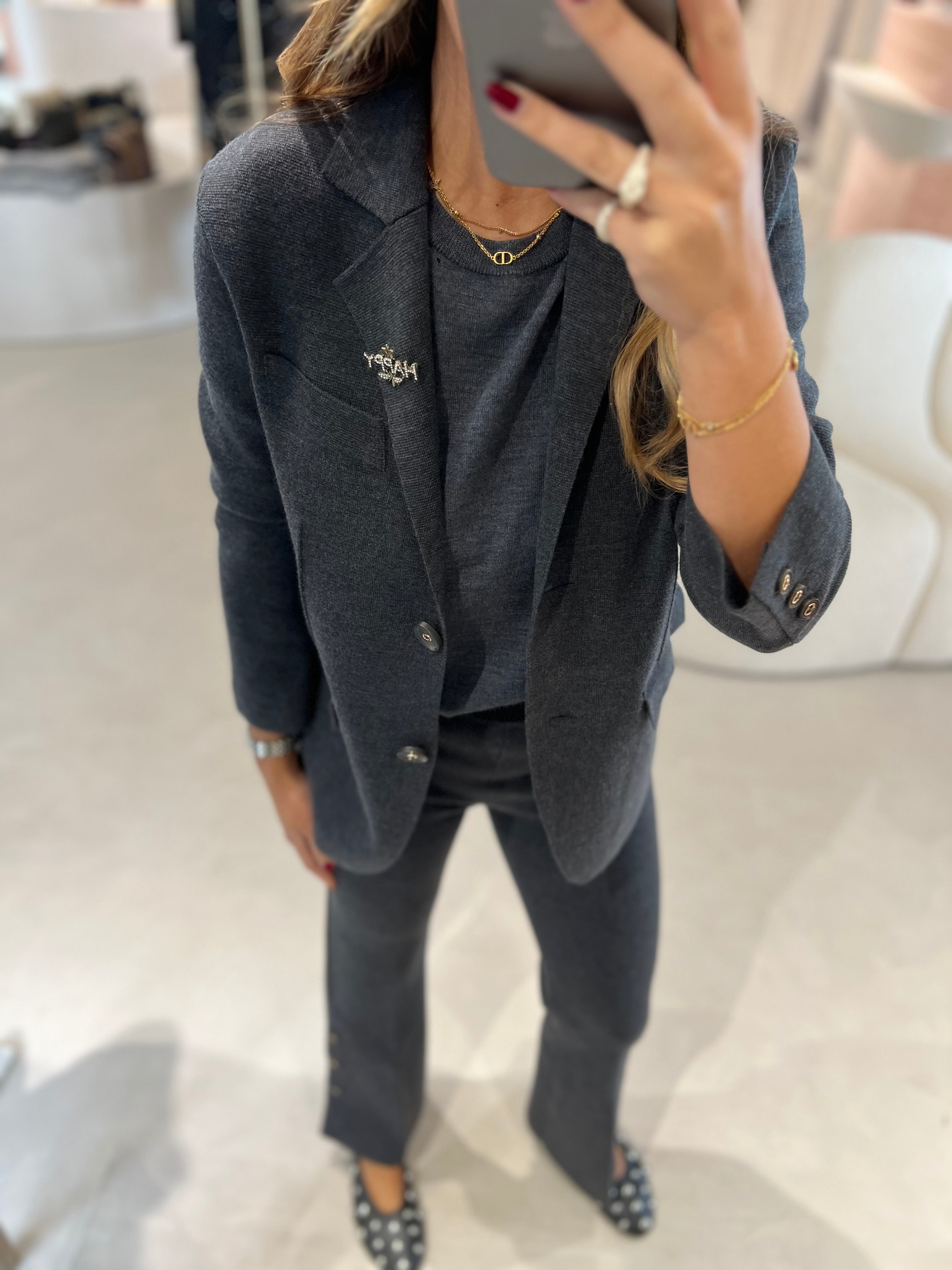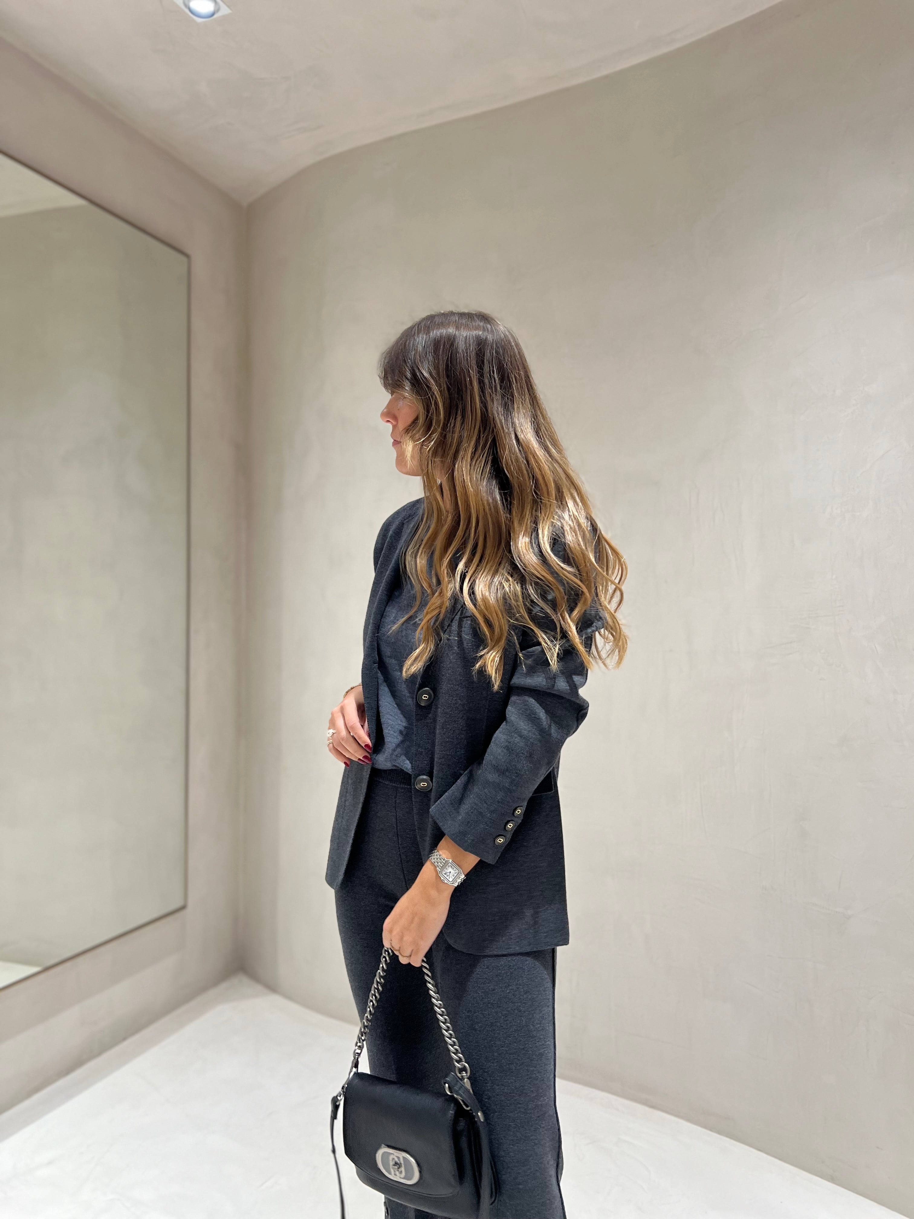 Conjunto de blazer e calça TWINSET em malha de lã cinza
