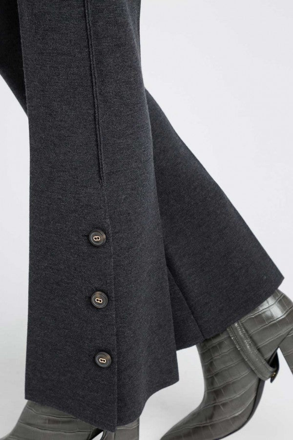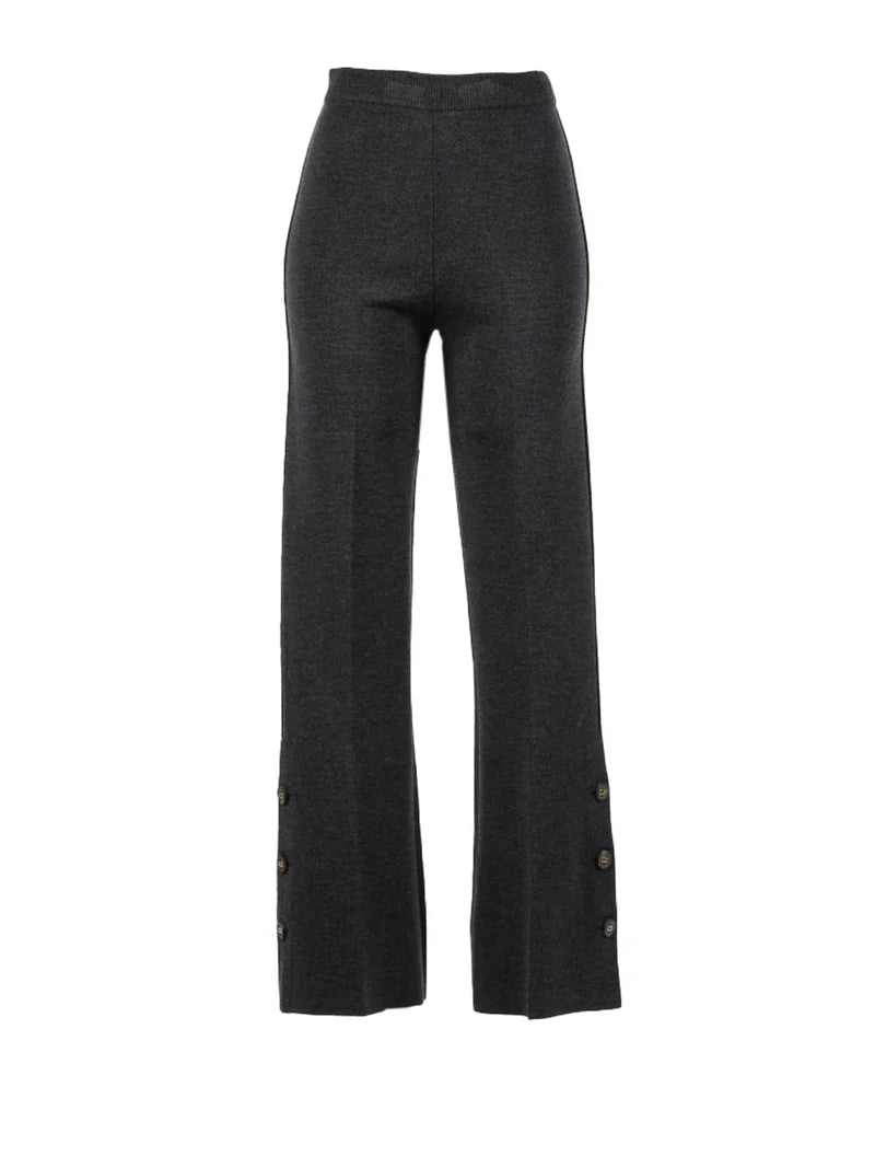 Calça TWINSET em malha de lã cinza modelo flare com cós elástico e racha lateral com botões
