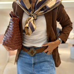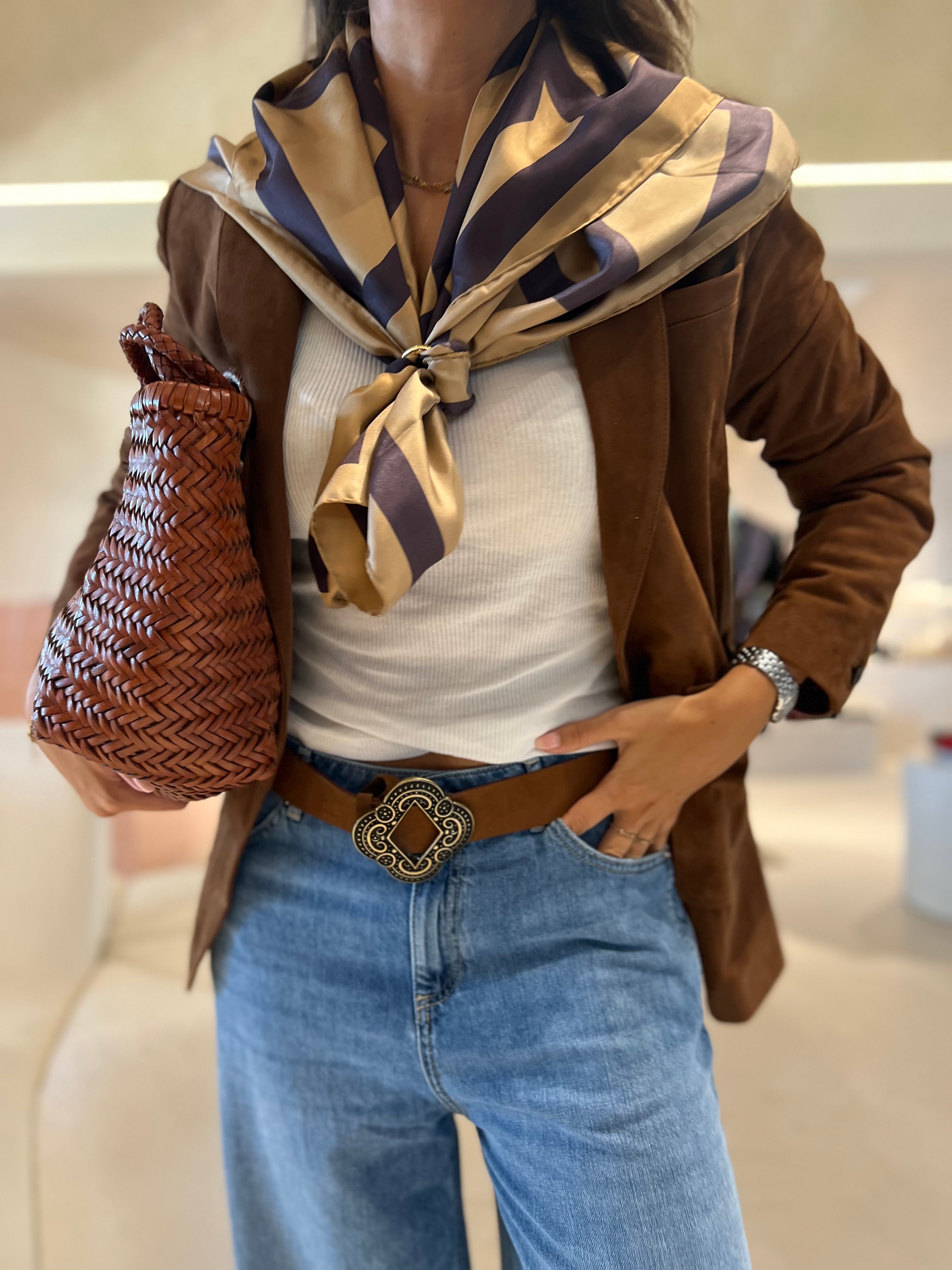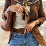 Lenço em Seda 50x50 em Camel e Castanho | Liviana Conti