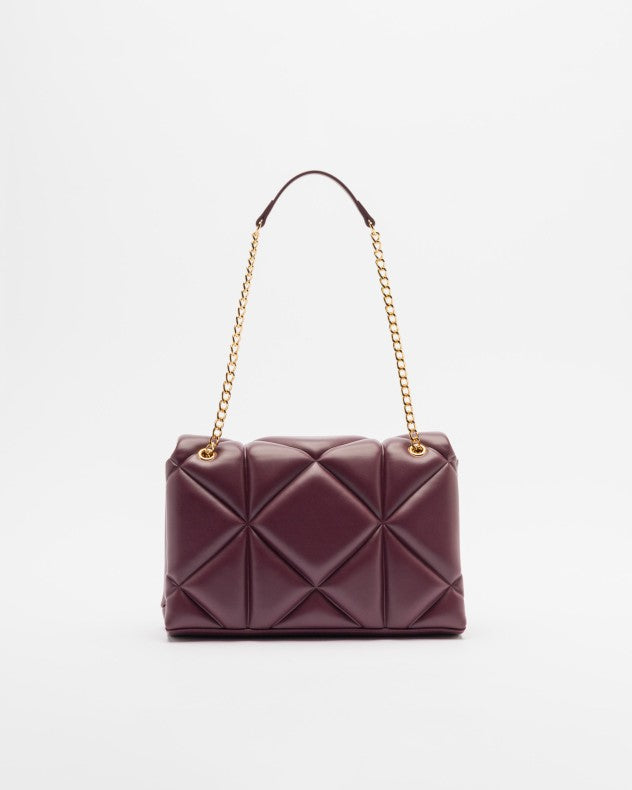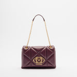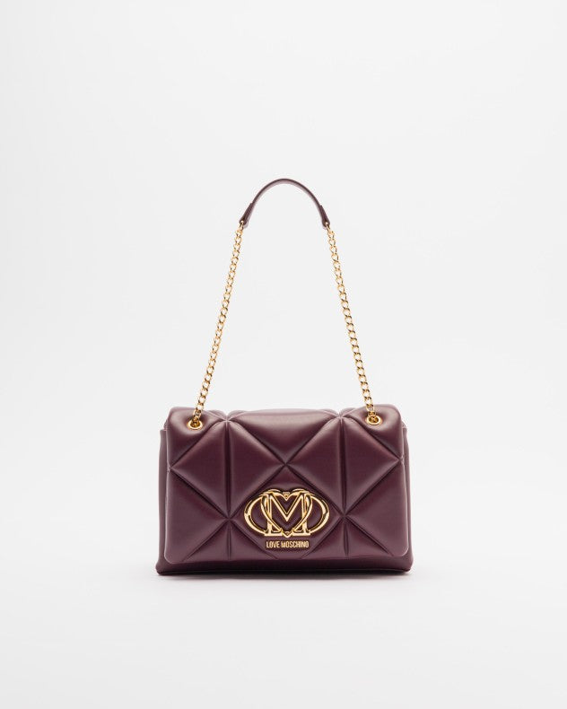 Mala acolchoada bordeaux com logo metálico à frente| Love Moschino