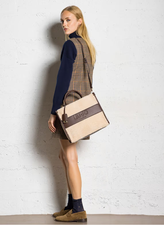 A Medium Teddy Tote Bag Liu Jo une estilo acolhedor e funcionalidade refinada. Produzida em tecido teddy com textura suave, traz alças confortáveis para uso de mão, além de alça removível e ajustável para uso ao ombro ou transversal. O logo da marca aparece em detalhe frontal, reforçando a identidade com elegância. No interior, o forro estampado e o bolso com zíper garantem organização eficiente. Um modelo versátil, ideal para o dia a dia com um toque aconchegante e sofisticado.