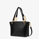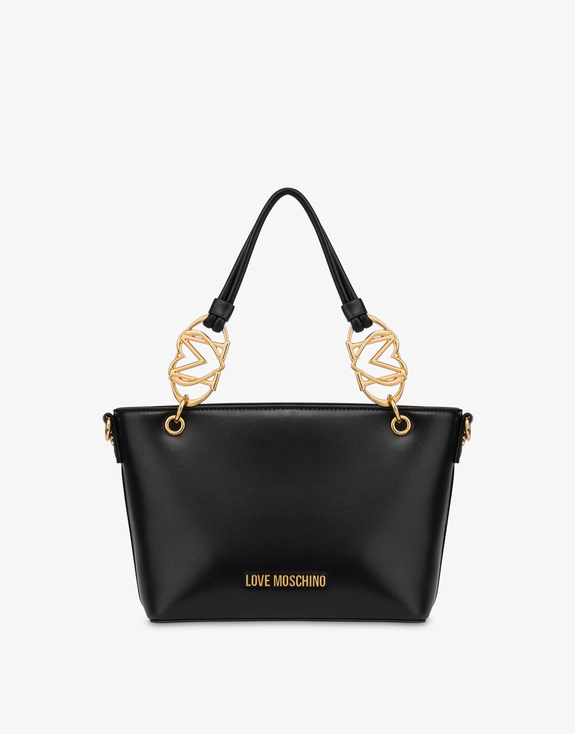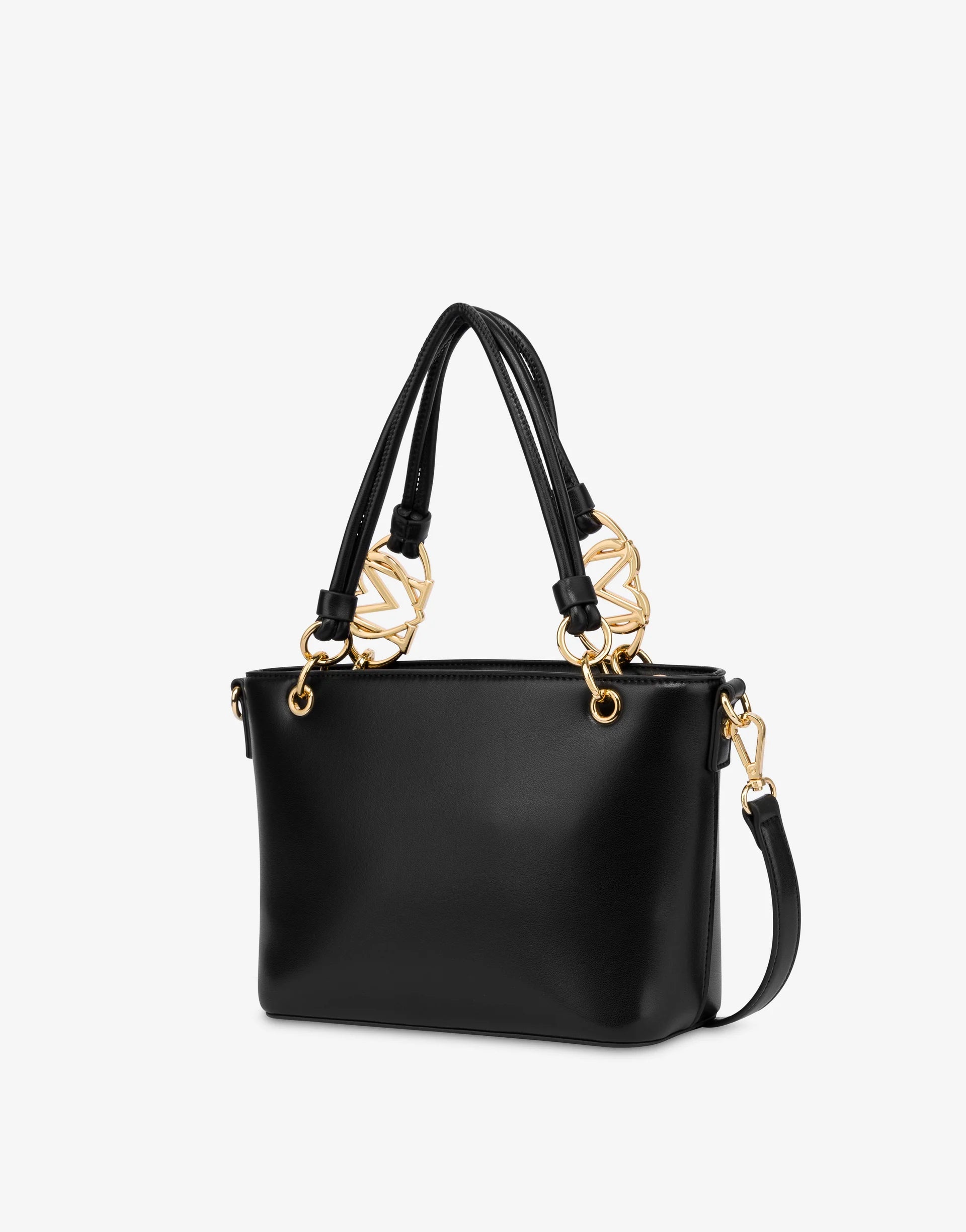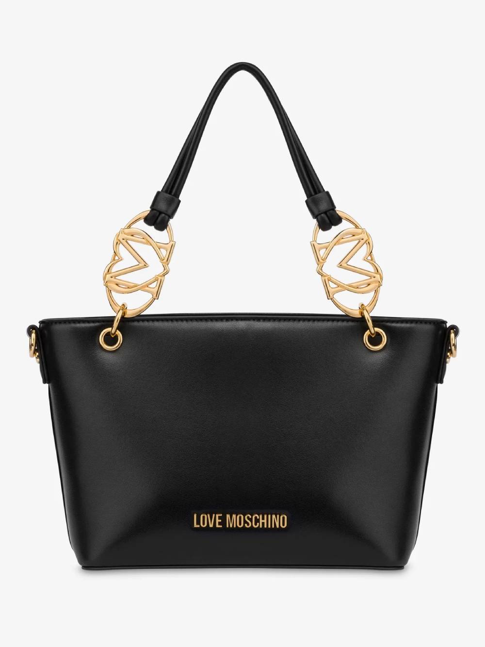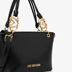 Mala de ombro Love Moschino em preto com alça de tira dupla com logotipo metálico e alça a tiracolo amovível e ajustável. Fecho de correr e logotipo na frente