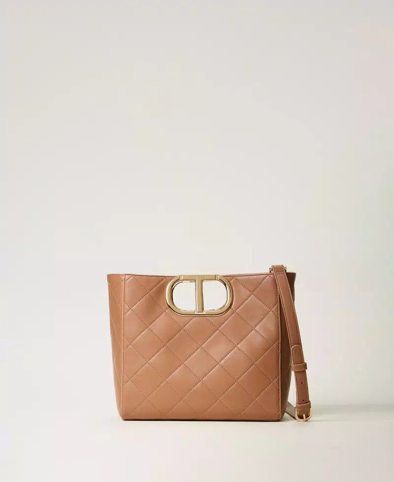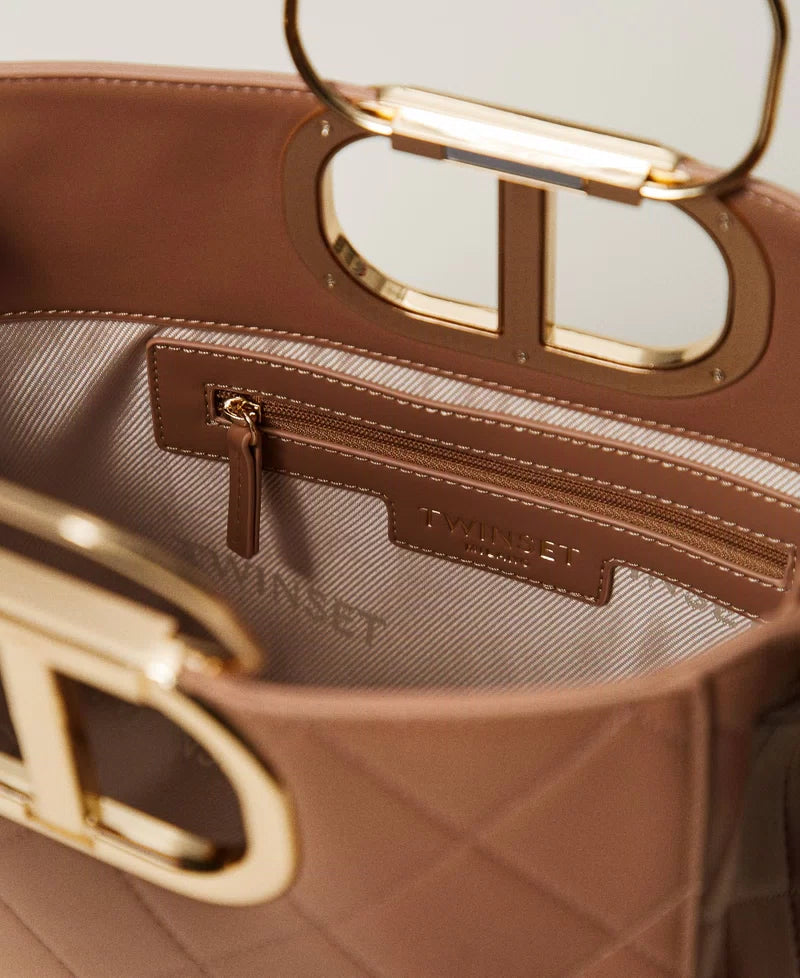 Mala TWINSET com Alça e Pega Oval em Camel