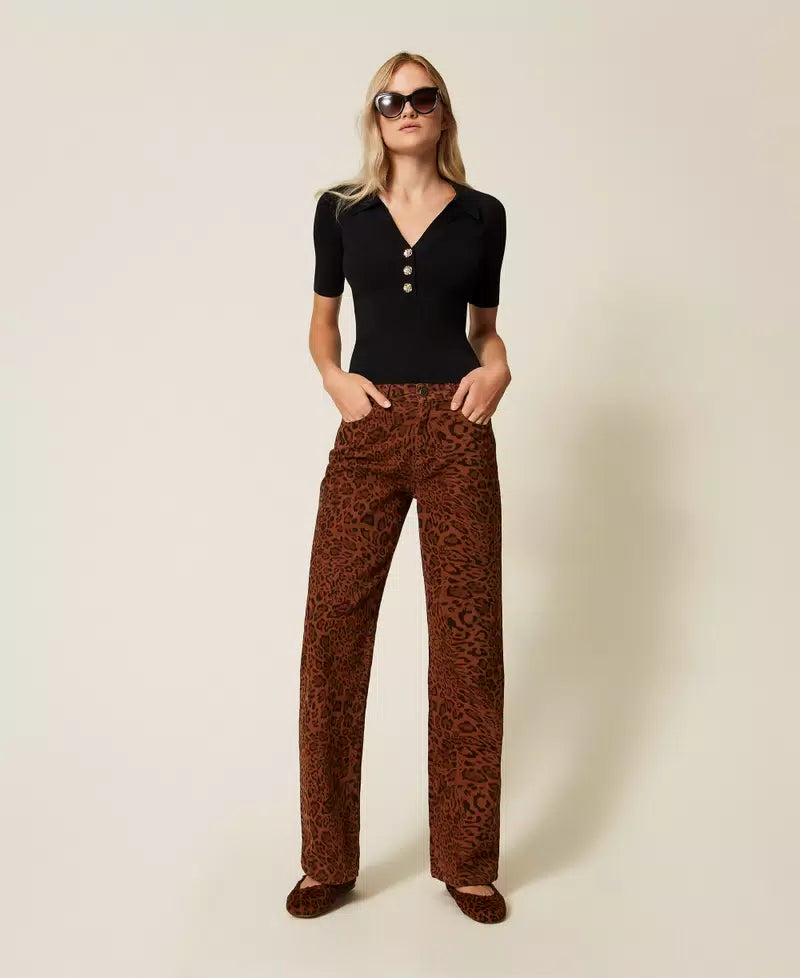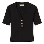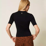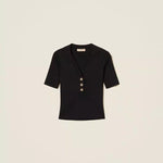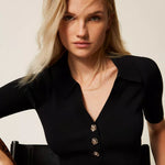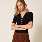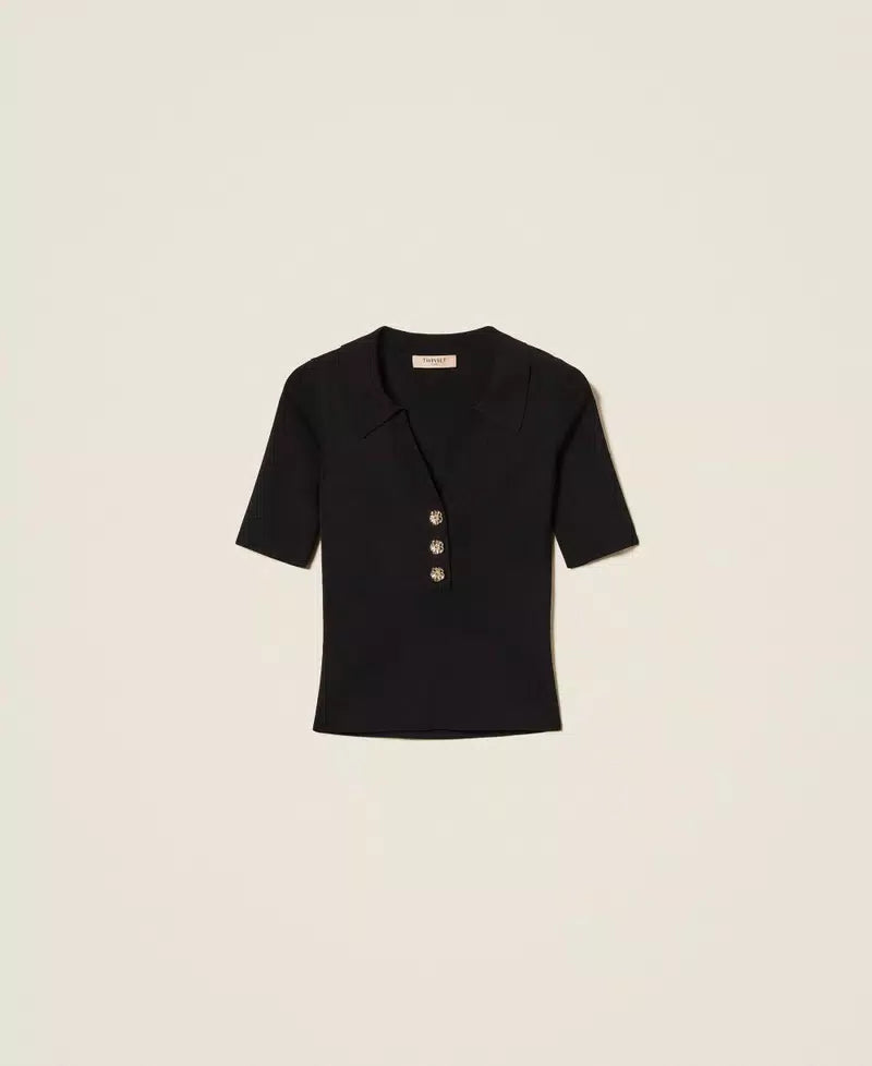 Polo Canelado Preto com Botões de Cristal | TWINSET
