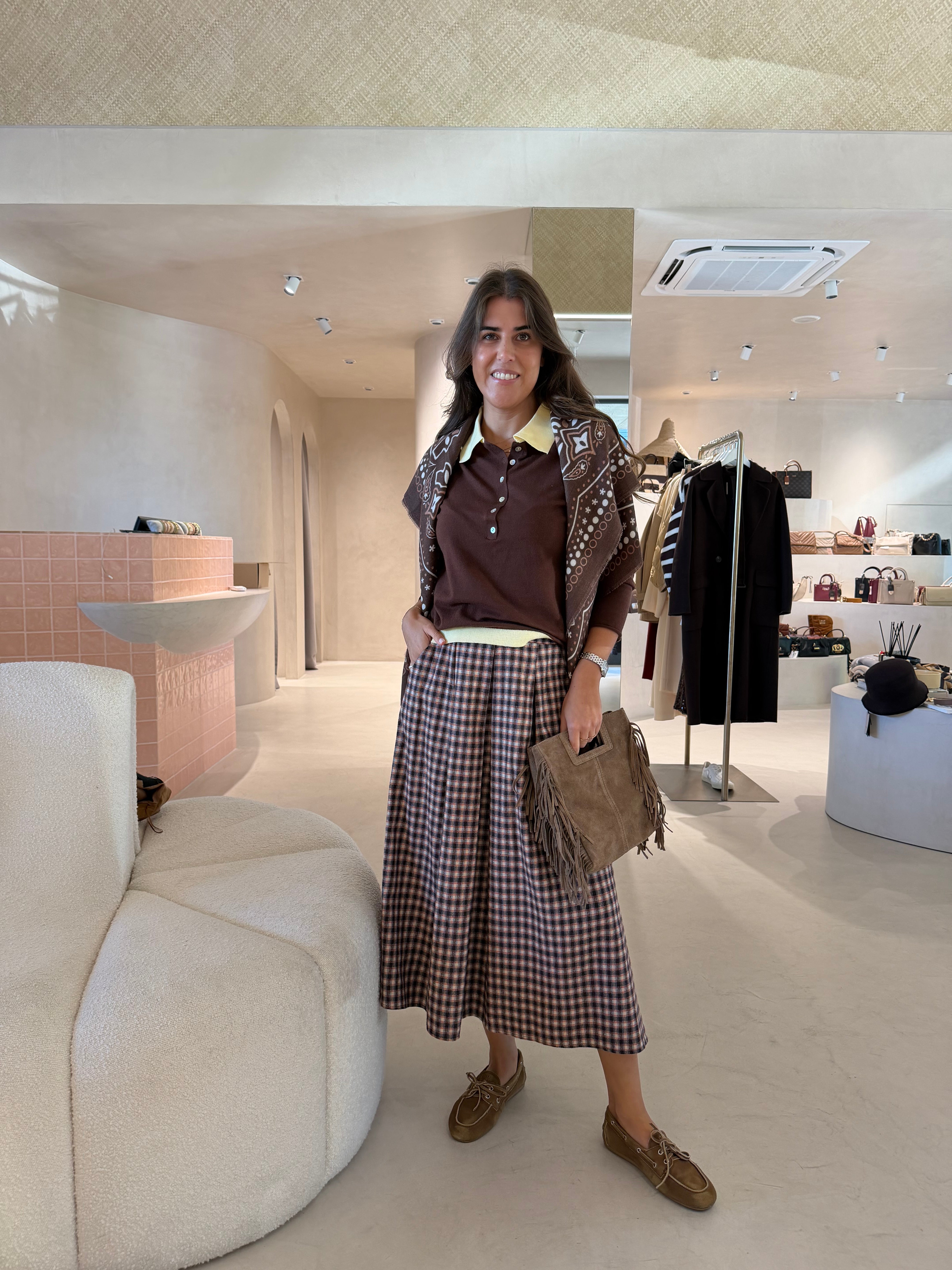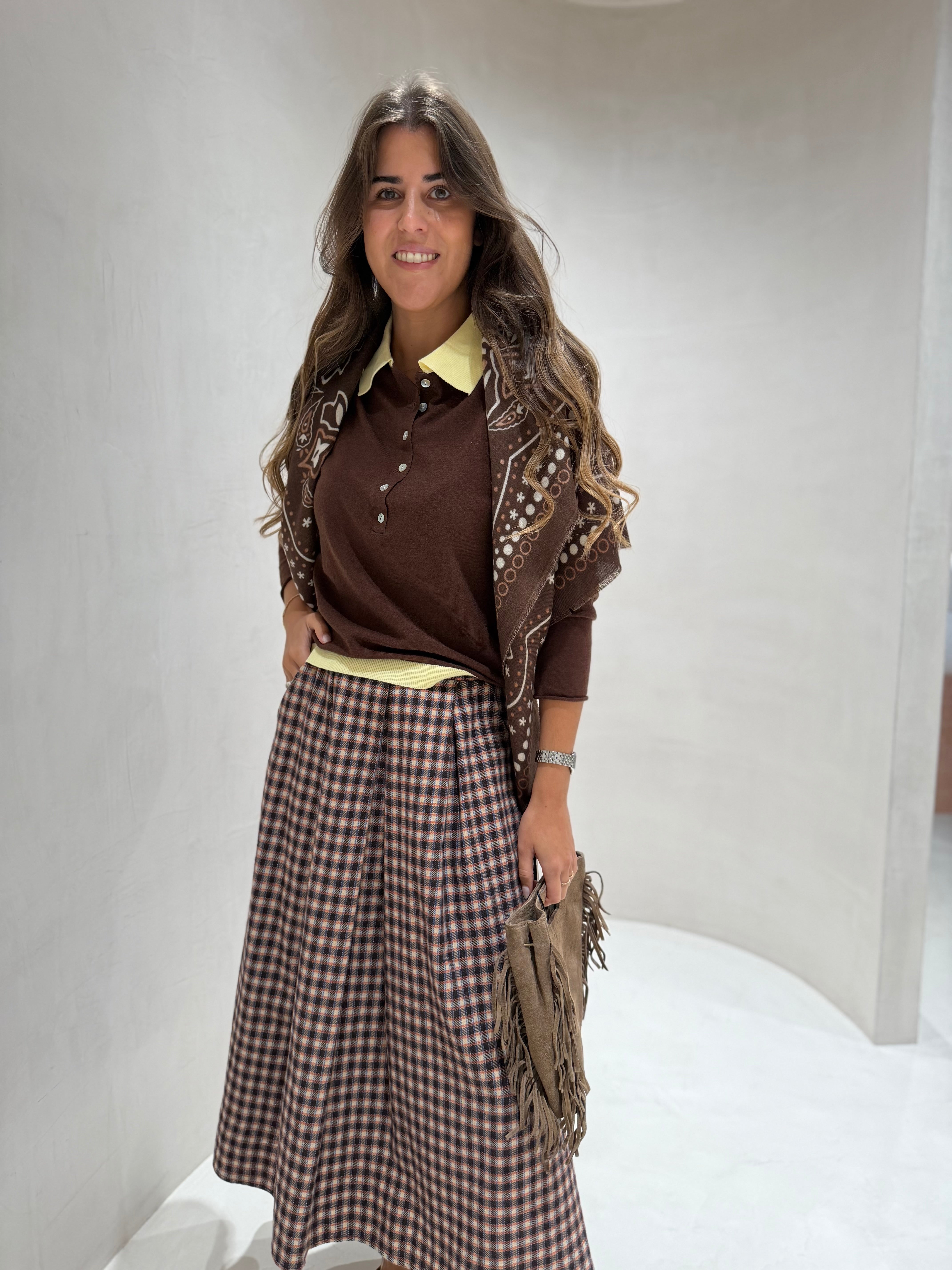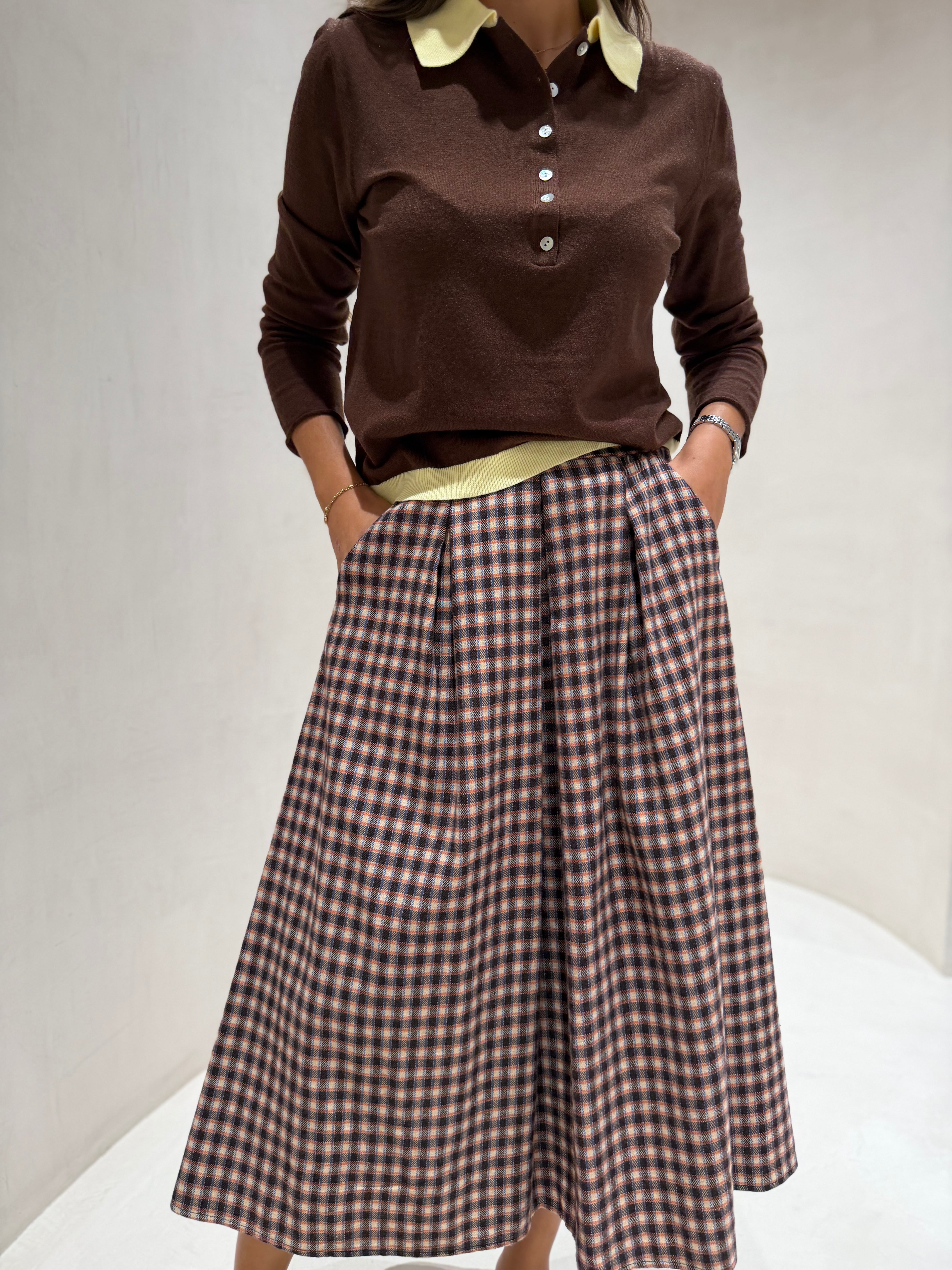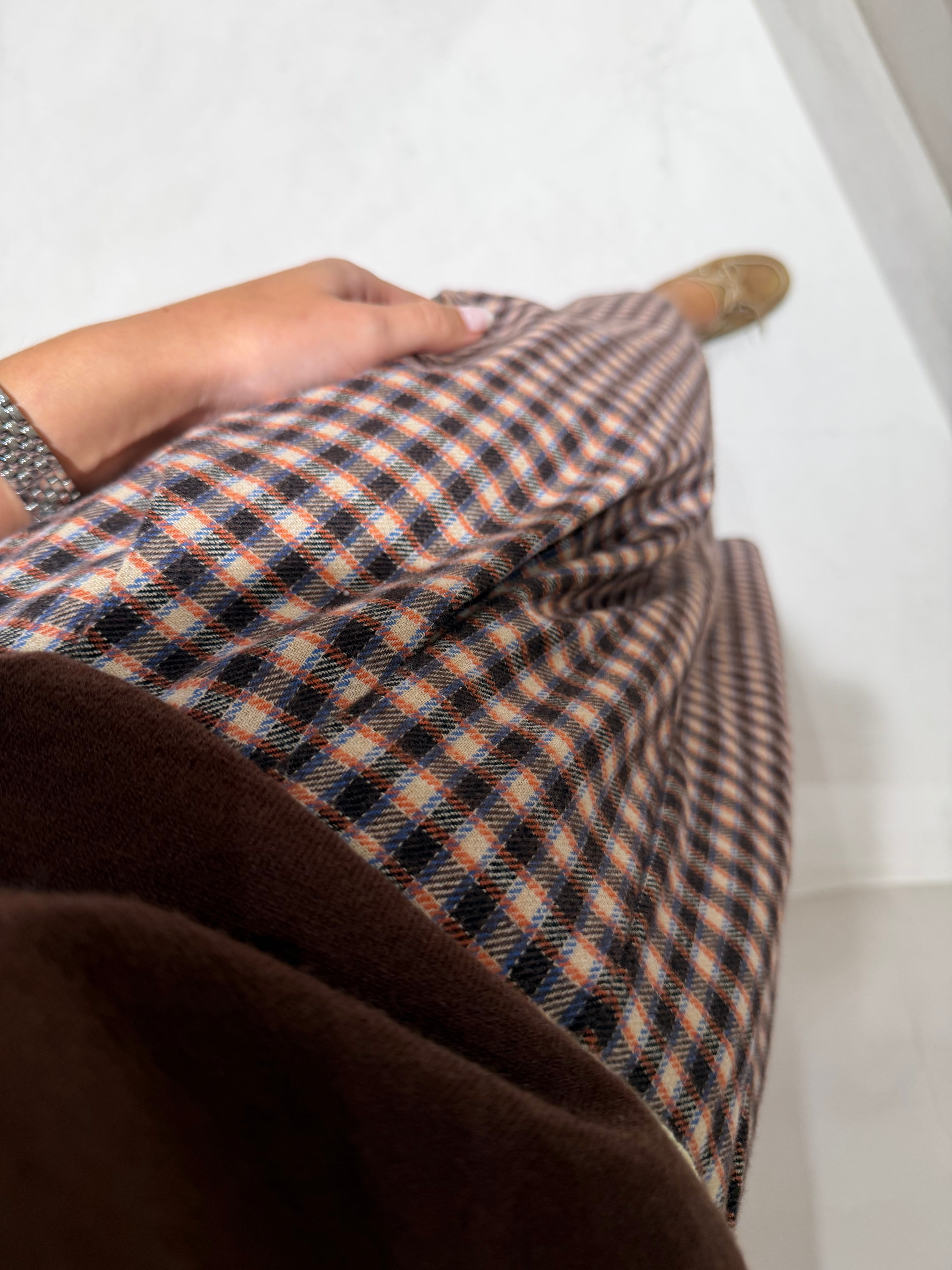 Saia de Lã com Estampa Xadrez Castanho | VIOLETA